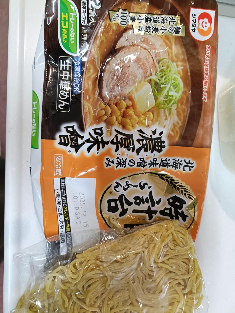 北海道に行くと必ず行く時計台がネーミングになっている生ラーメンです。濃厚味噌と謳っている通りの濃厚でコクのあるスープの味わいです。麺は茹で時間3分なので結構コシのある旨みのある麺です。太めの麺とコクのある濃いめの味噌スープが良く絡んでいて美味しいラーメンです。お値段が手頃な割に美味しいチルドラーメンなので、休日のランチ用に買っておくと便利に食べられますよね。今度は醤油味を試してみたいです。