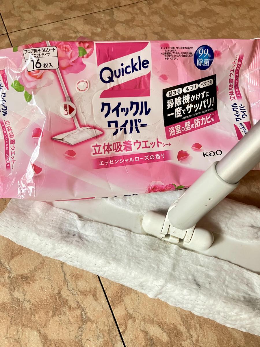 こまめに雑巾がけはしているほうなのですが、それでもクイックルワイパーを使うと汚れがつきますし、気づかないうちに落ちていた髪の毛なんかも一緒に取れます。香りはありがちというか、いかにも花王のローズの香りという感じです。自然な香りというよりは、人工的な香りかなという印象です。