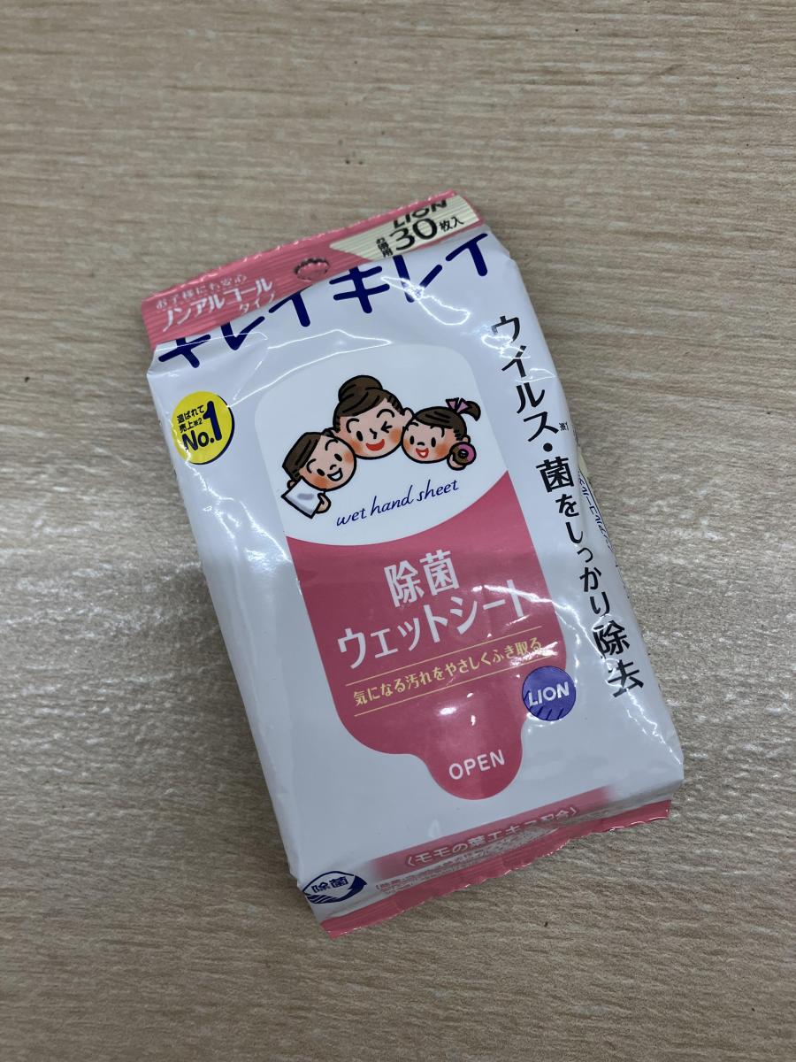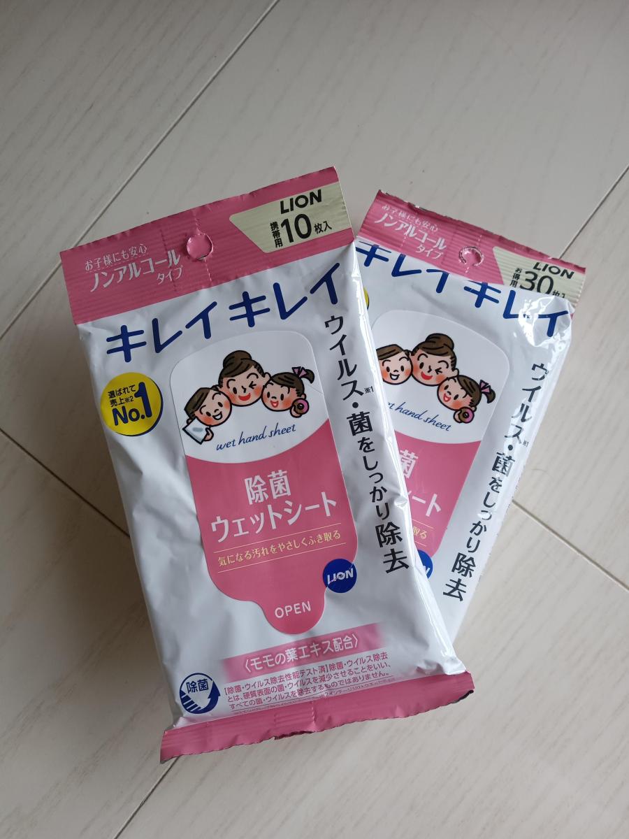 いつも使用しているハンドソープのキレイキレイの除菌シートです。ピンクのパッケージも気に入っています。ノンアルコールなので安心して使えます。また、シートが柔らかく丈夫なので使いやすいです。モモの葉エキスが入っていて肌にやさしいところも良いです。