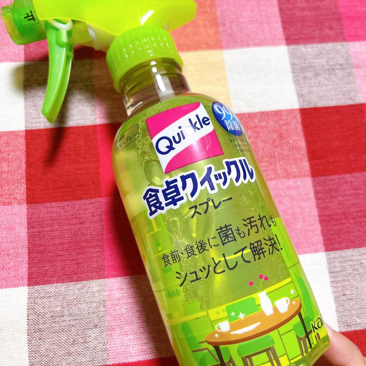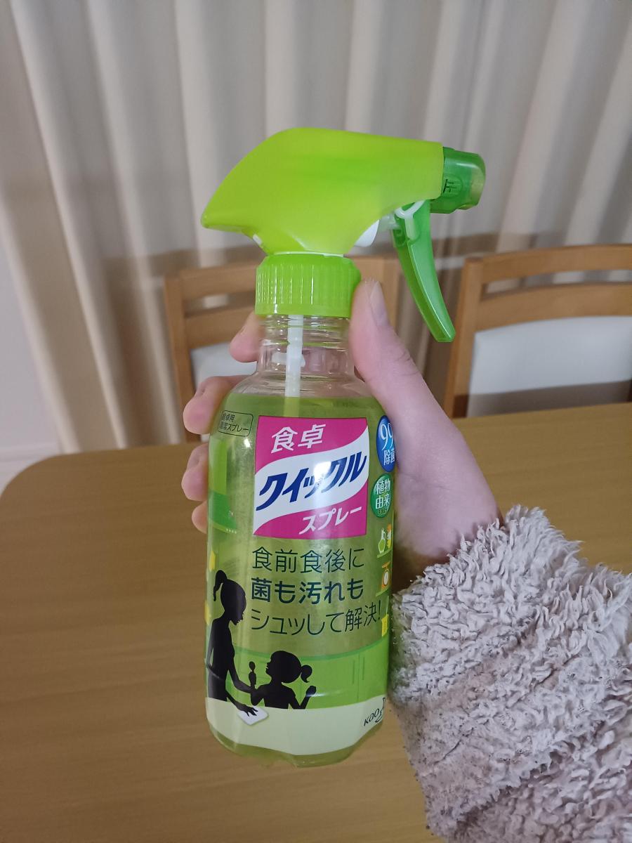 食前、食後にテーブルを拭く際に使っています。スプレータイプなのでシートのように乾燥してしまう心配がないのがいいところ。シュッと噴霧するだけで簡単に掃除ができます。テーブルだけでなくレンジ周りや冷蔵庫の掃除にも使っていて油汚れもしっかり取れる気がします。掃除しながら除菌もできるのも安心感があります。