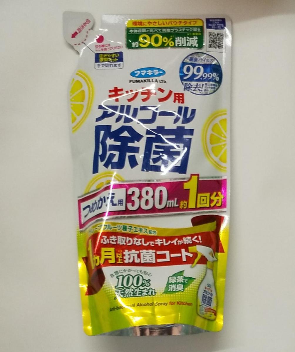 黄色いパッケージなのですぐに見つけることができる我が家では定番のアルコールスプレーです。
