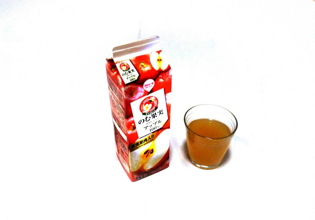 果肉入りのためか、見た目は少し濁った感じがします。味は本物のりんごに近く、自然な甘さのジュース。おいしいですが、ジュースの中では少し割高です。