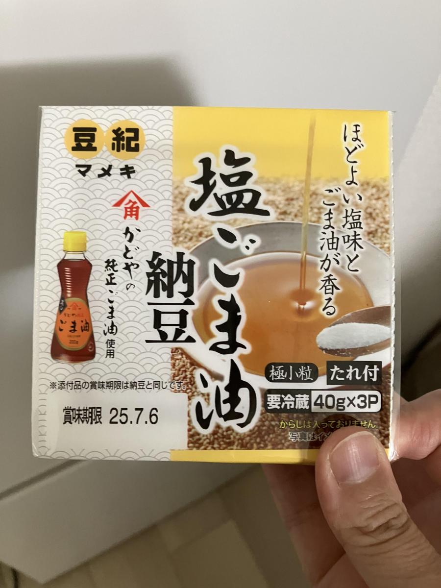 納豆コーナーで見かけてずっと気になっていたのですが、150円くらいしていて高くない?と躊躇していました。値引きされているものがあったので試してみましたが、めっちゃおいしかったです。ごま油の香ばしい香りが食欲をそそります。小粒の納豆はもちもちでやわらかいです。ごま油で食べると一気に中華感!やや塩味も効いているのでごはんも進みました。納豆のにおいが苦手な人でも食べやすいかも知れません。でもやっぱりちょっと高いかな?家でもごま油とお塩を用意して真似してみようと思いました。