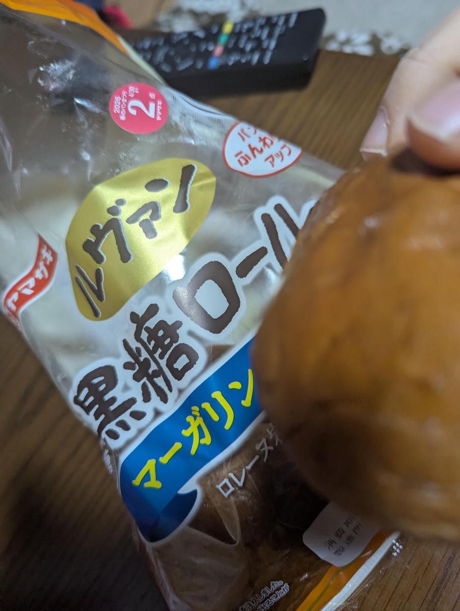バターロールにマーガリンが入っているタイプはよくあるが、この商品の最大の魅了は黒糖の甘みがマーガリンの塩味とマリアージュしてすごく美味しいところ。一つが大きいので食べ応えもある、!
