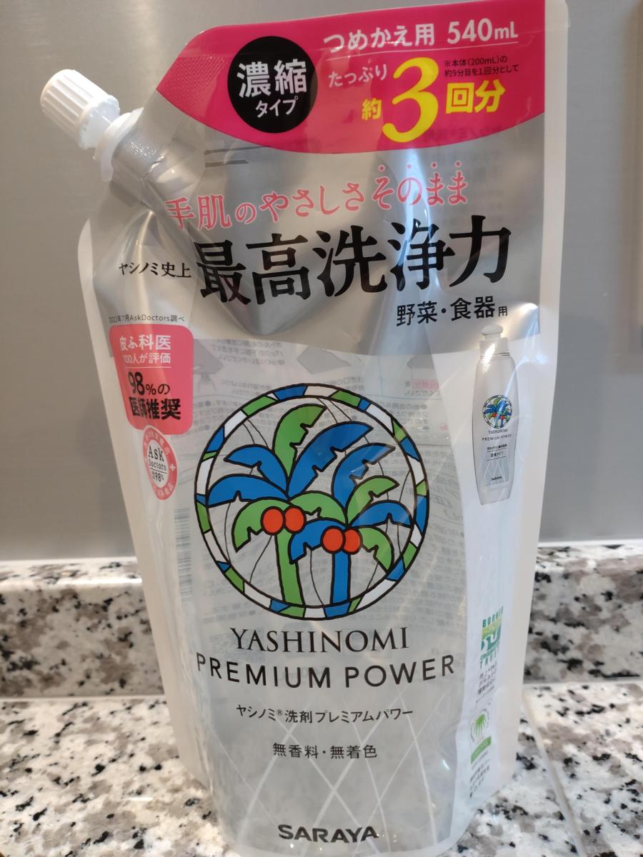 手にやさしいということを聞き、以前からヤシノミ洗剤が気になっていました。しかし、通常のものは油落ちがよくないという口コミを見かけたので躊躇していたところ、こちらのプレミアムパワーを発見して購入してみました。