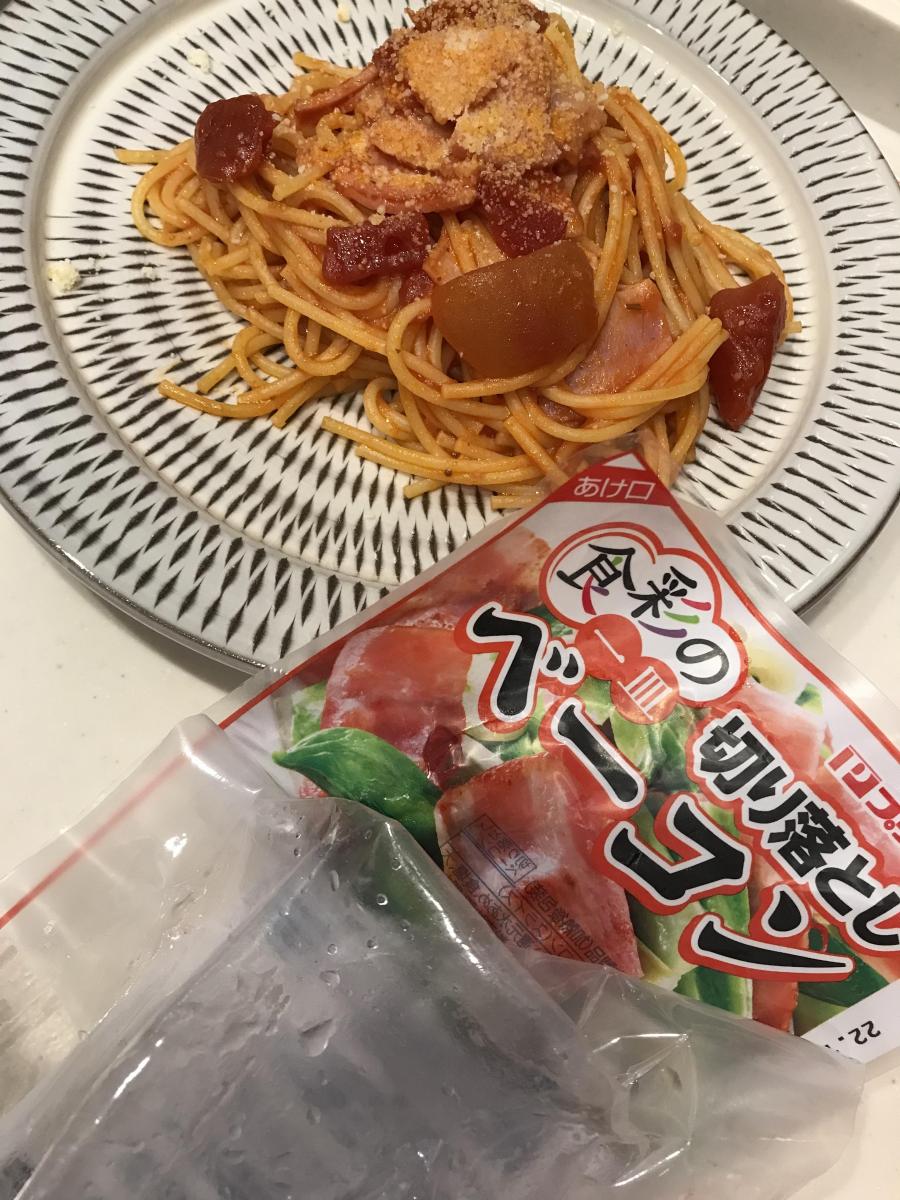 脂身があるベーコンなのでフライパンで焼く時に油をプラスしなくてもベーコンの脂身で美味しく香ばしく焼けました。