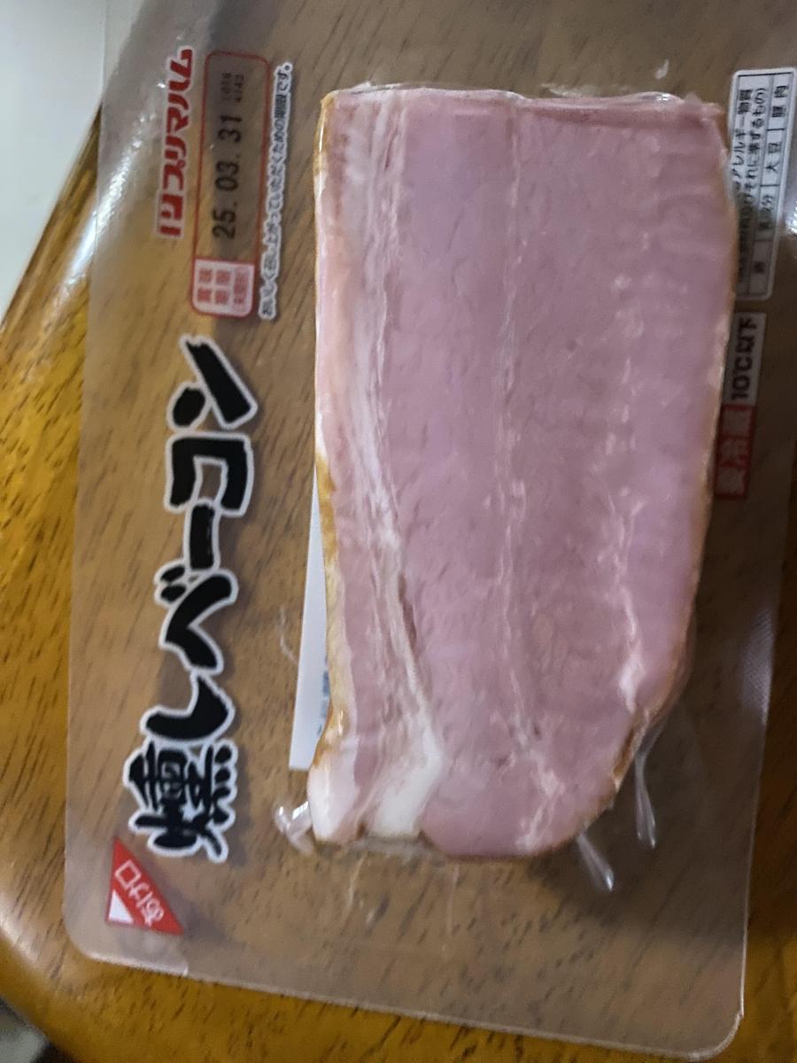 こういう塊のベーコンは好きな大きさに切れて使えるので、使いやすいし食べ応えもあります。