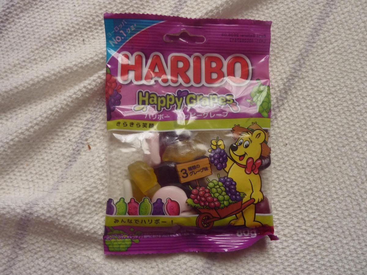3種類のグレープの味が、とても美味しいです。でも、どれも同じ味に感じます。いつものハリボーと同じく、ハードグミですが、ねっとりとした食感で、歯にまとわりついてくるような感触です。ぶどうの味のグミなのだから、形もぶどうにすればいいのにとは思います。