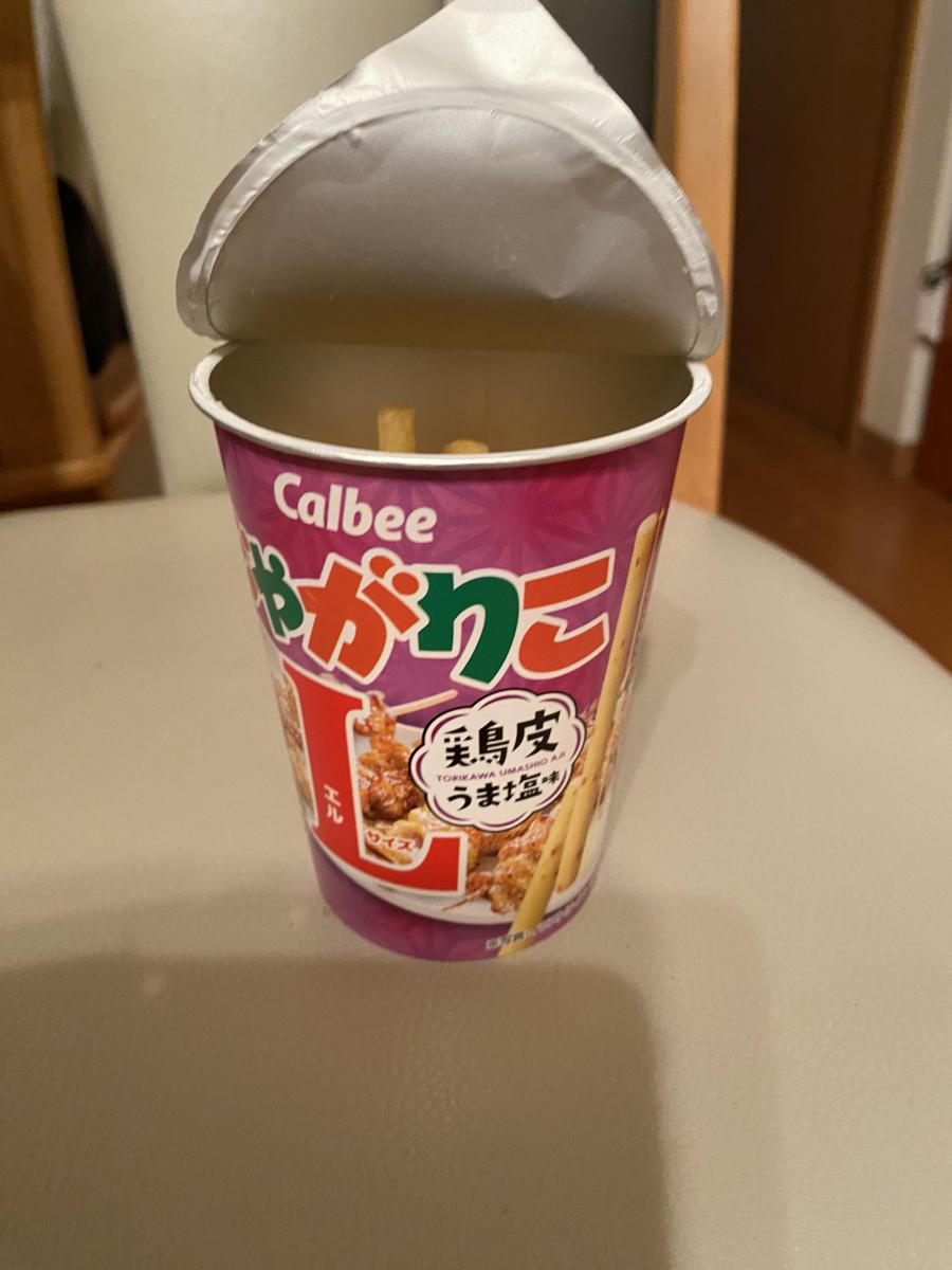 じゃがりこ 鶏皮うま塩味のネーミングとパッケージに目が惹きどんな味か試したく購入してみました。香りは塩焼き鳥のような香りが漂い、食欲がそそります。食べると、カリっとサクサクでLサイスなのでカリカリ食感がしっかりと楽しめて大変美味しいです。ですが、鶏皮の味があまり分からなかったです。出汁っぽい塩味がしっかりと感じ、塩気強めに感じました。