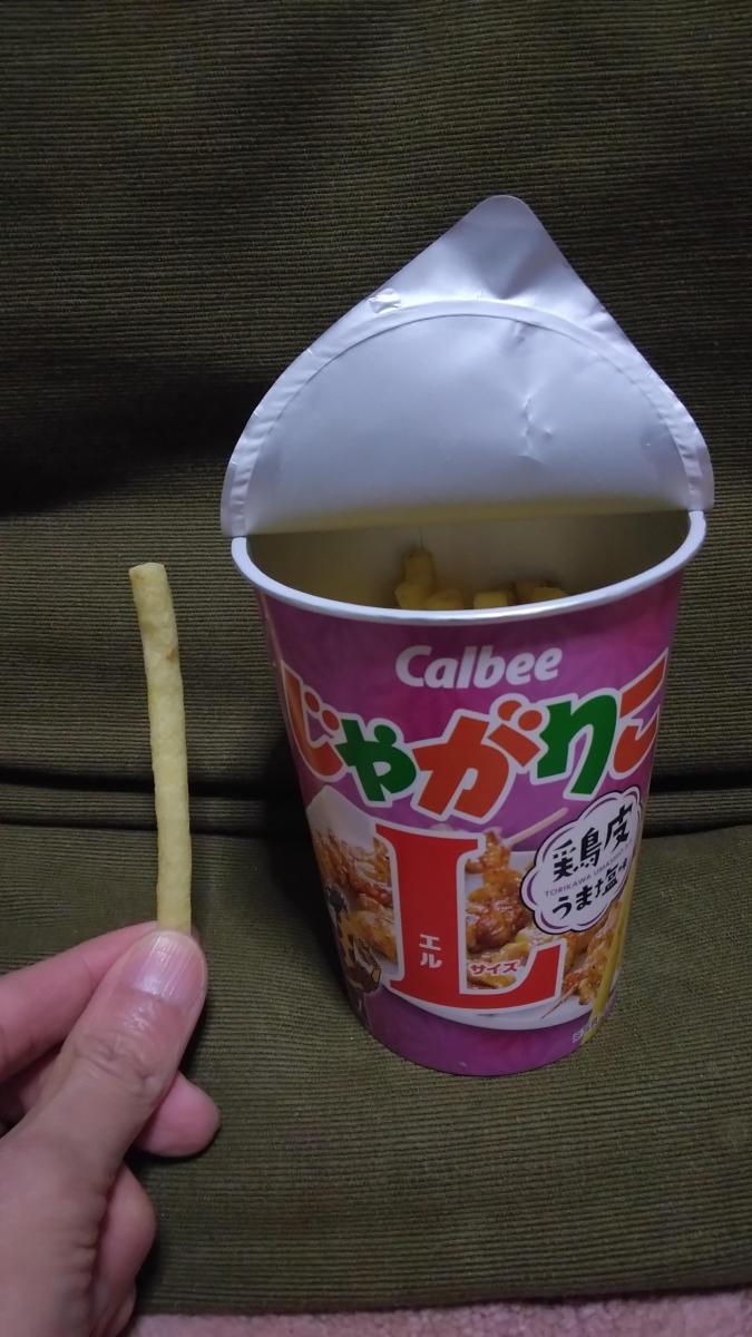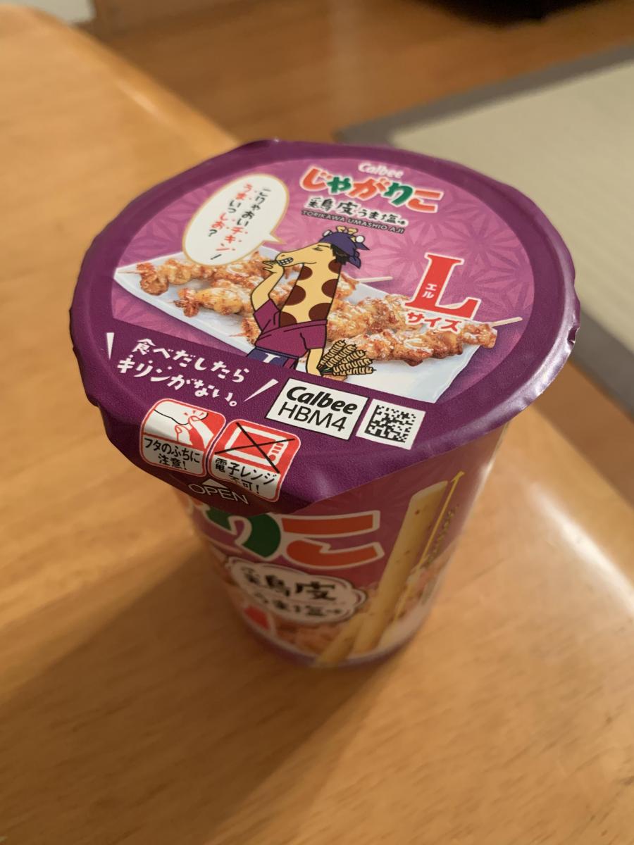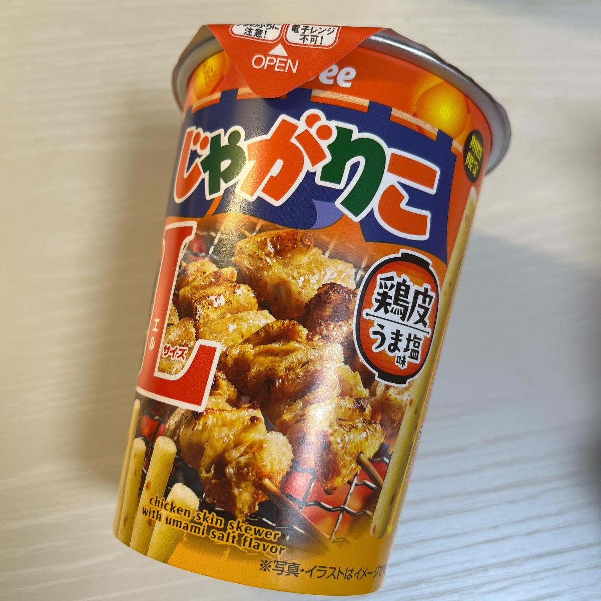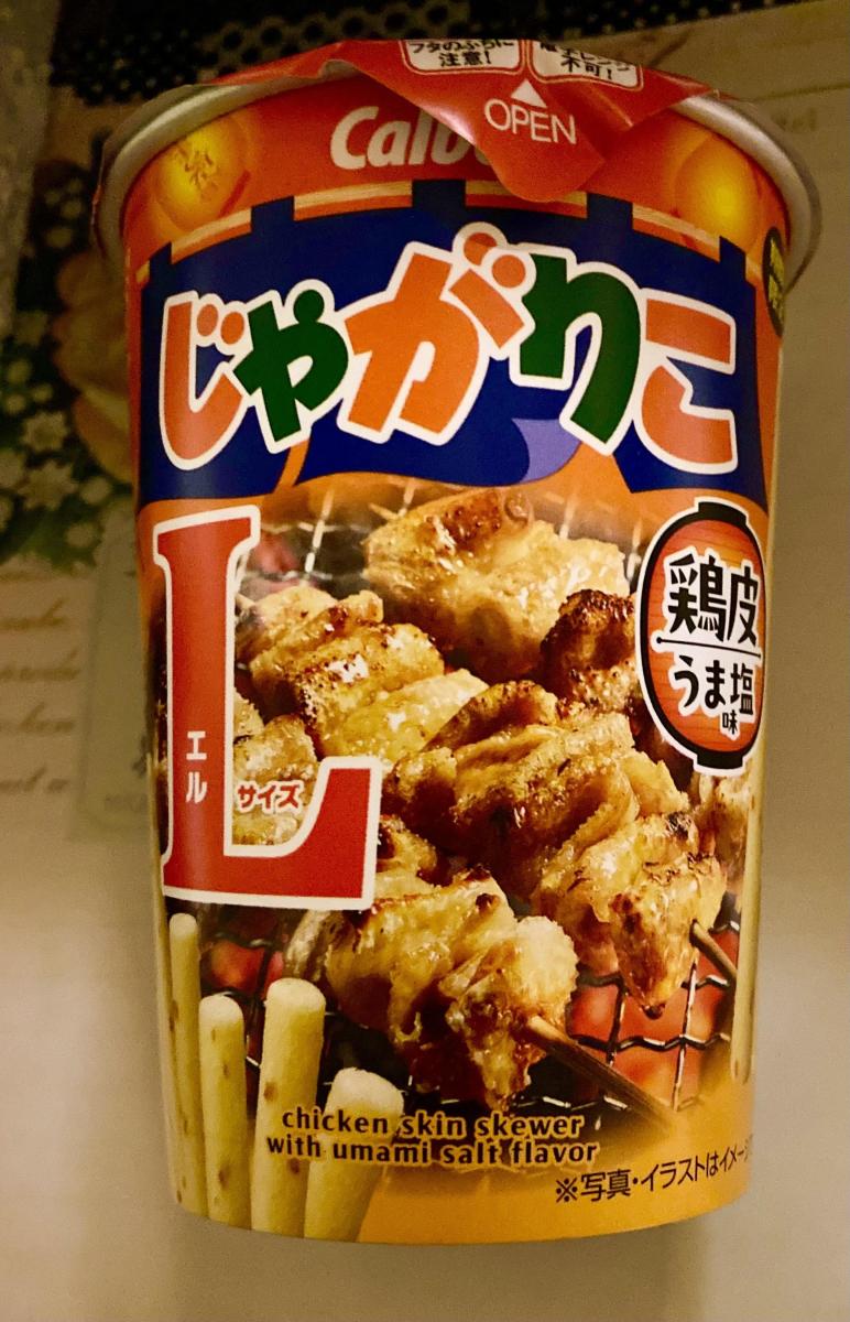 じゃがりこの食べ応えありのLサイズです。鶏皮うま塩味って、あまり見ない味なので買ってみました。こってり鶏皮とぴったりの、うま塩のバランスもよくガリガリ食べてしまいました。