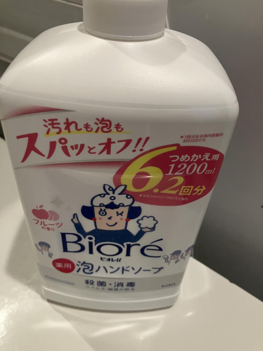 泡のハンドソープにしてからはその便利さに戻れなくなりました。ビオレは肌に優しいイメージが昔からあるのでリピートしています。こちらはフルーツの爽やかな香りで年中使えます。泡のまま出るので当然泡立ちも良く子どもも洗いやすいと思います。