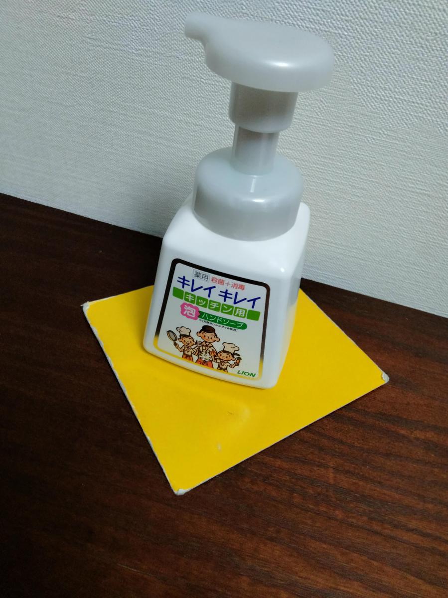 キレイキレイのキッチン用泡ハンドソープ。殺菌と消毒を兼ねていて、キッチン用としては心強い。普通のキレイキレイとの違いはよくわからないが、泡切れは良く、使い勝手は良い。