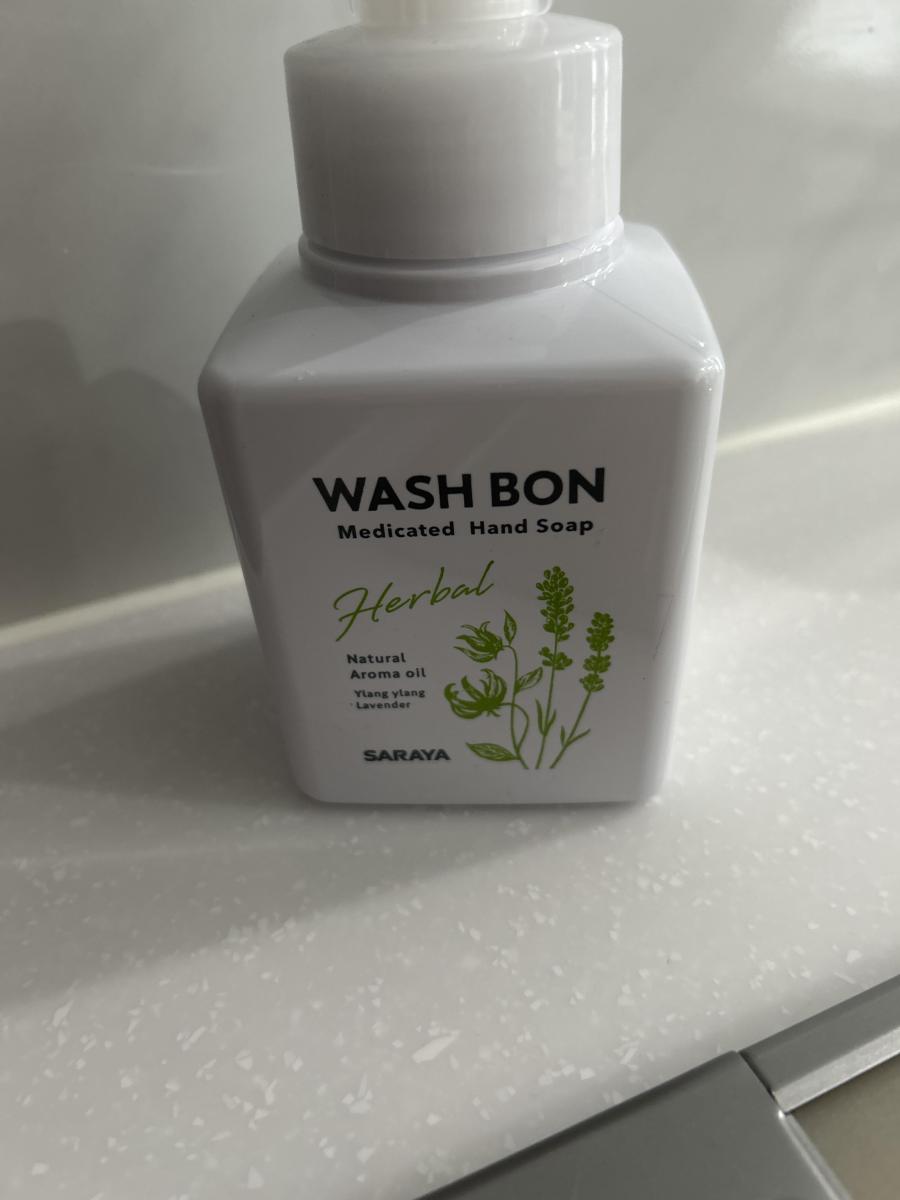 縁あって出会った商品です。いつも使っているハンドソープと違い、四角の形状ボトルです。洗面所の固形石鹸が終わったので、切替で出番になったこちらの商品は、使ってみると、泡が他のメーカーさんより、優しい感じがします。クリーム状の泡ではなく、少し水気がある泡ですぐ水で洗い流せるので気持ちばかりでの節水ができます。アロマの香りをアピールしている通り、香りも自然な優しさがあります。ただ、子供には好みが分かれるようで、洗い終わって手を拭いてどこかに歩いて行くとなんか臭いと言われる事もあります。香りの持続性があるので、出かける前とかには不向きかもしれません。肌を痛める事のない優しい商品です。