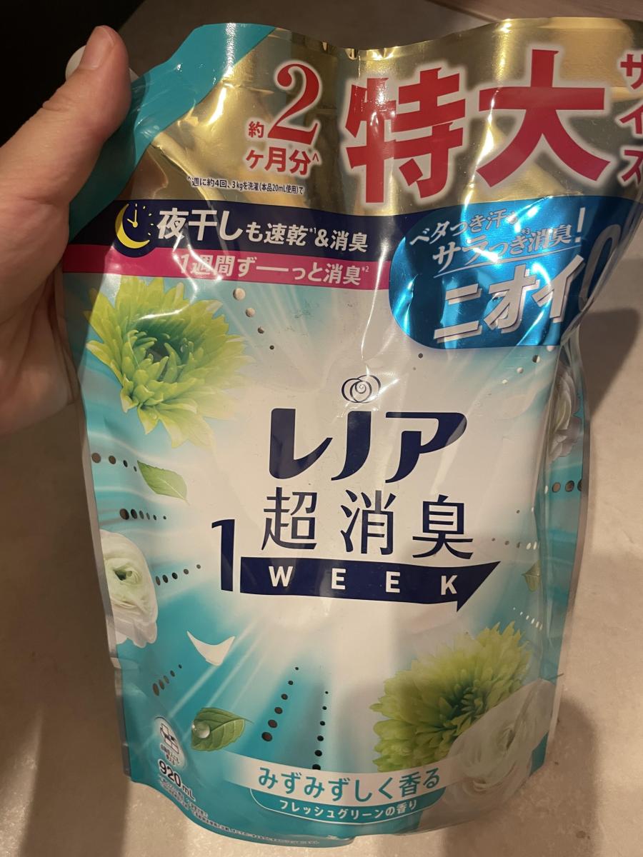 柔軟剤は香りが強すぎるのが苦手なのですが、このフレッシュグリーンは爽やかな匂いで香りも控え目です。1週間超消臭や花粉ブロックはまだ実感していませんが、家族が花粉症なので早目に対策したいと思います。