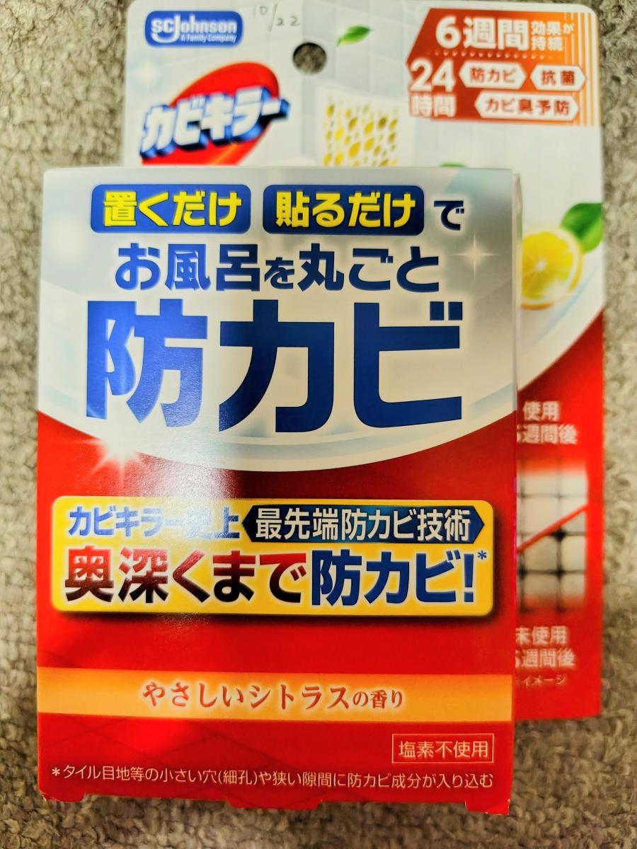 今回購入したのは、優しいシトラスの香り。香りはそこまで強くなく、お風呂に入るとレモンのような柑橘の香りがほのかに香ってきます。カビキラーのように、もっとツンとするような香りかと思っていたので良かったです。