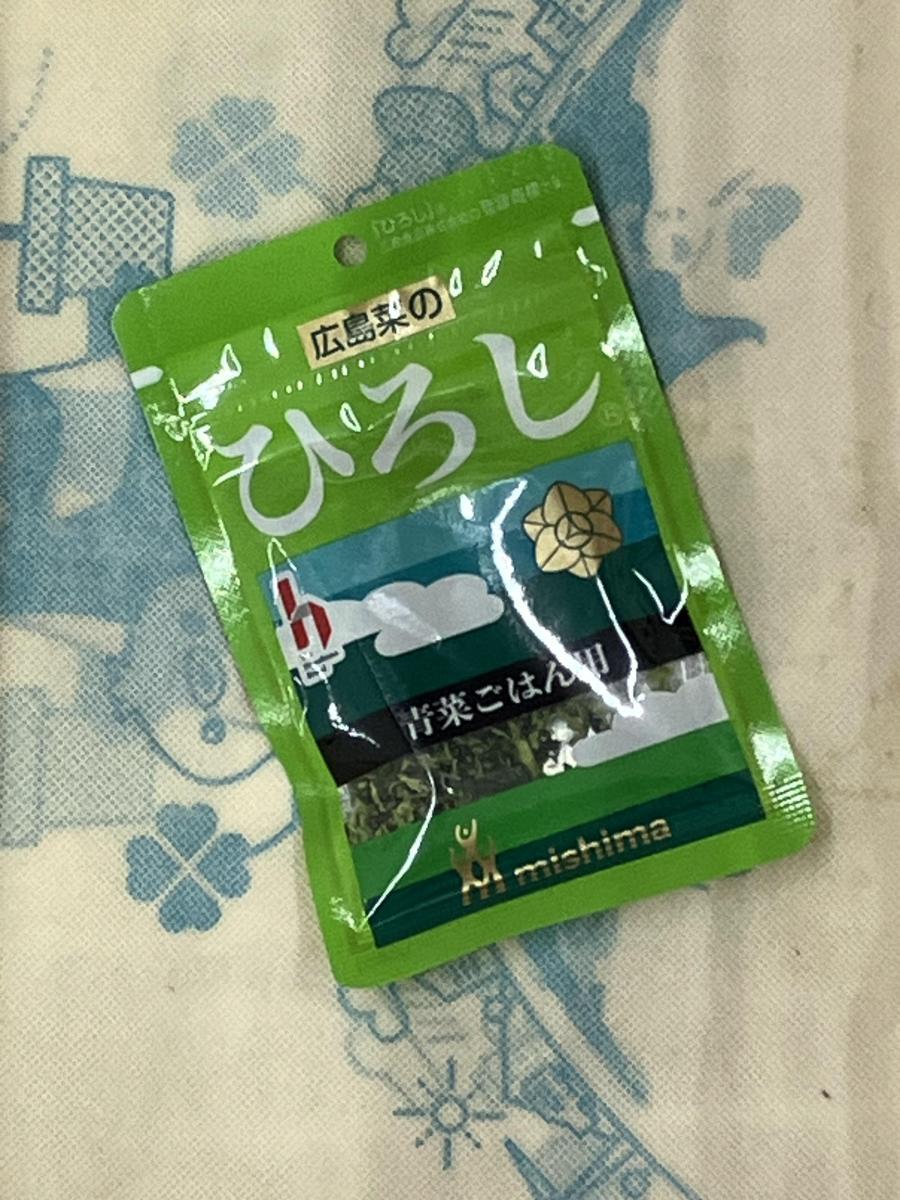 ネーミングがユニークなゆかりシリーズのひとつです。広島菜を原料に使っているので、ひろしかと思います。ほどよい塩加減の広島菜の素朴な味わいが美味しいです。