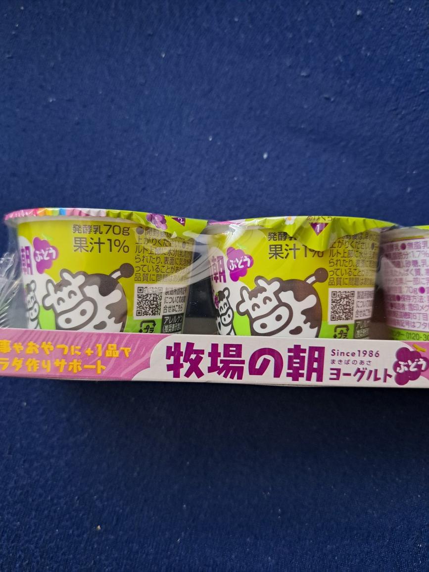 可愛い牛さんのパッケージとぶどうのフレーバーにひかれて買ってみました。酸味が控えめで食べやすいヨーグルトでした。寒天が入っているからか、プルプルしてておいしかったです。コスパもいいのでまた見かけたら買おうと思います。
