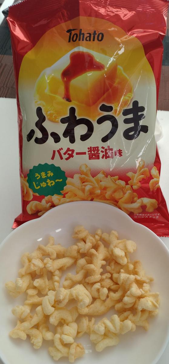 ふわうまとはとても上手くネーミングされたスナックたなと思いました。ふわふわで噛むとじゅわっと溶けていき、うまーっ、となります。ポップコーンの食感にも似ています。形もなんだか蛸のような不思議な形です。味もそんなに濃くなくおやつにピッタリです。