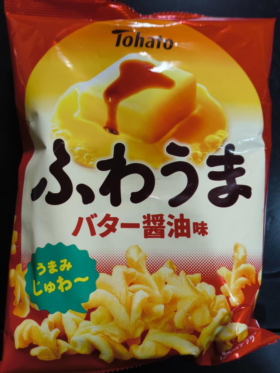 ふわっふわっの軽い食感のスナック。すうっと溶けるようなくちどけがなんともくせになる不思議なスナック。とろけるバターに香ばしい醤油の組み合わせは王道のおいしさですが、上品なふわうまにかかればそれはまるで新食感。