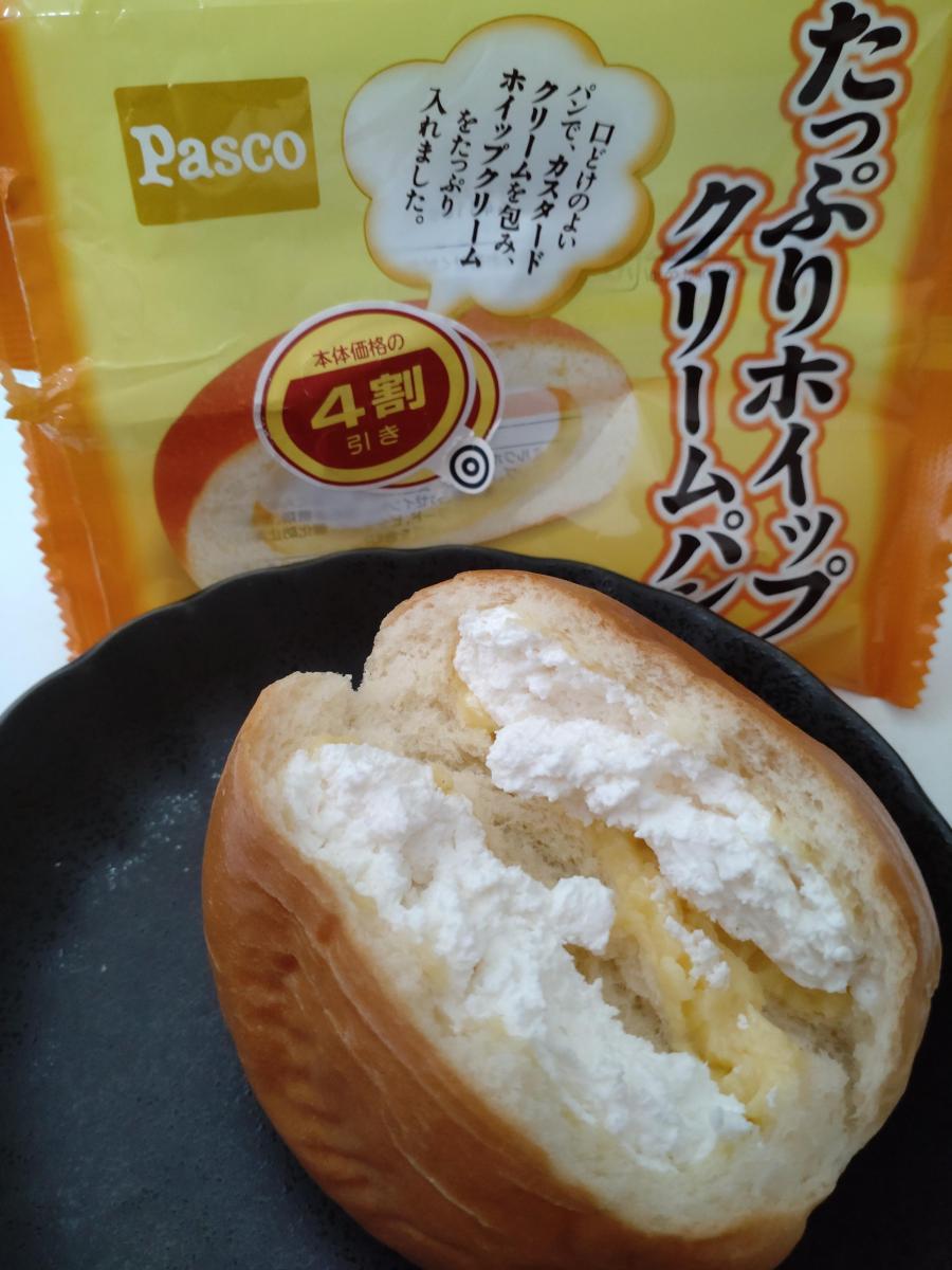 たっぷりホイップに目が惹き購入してみました。袋から出すと、ふわふわのパンが出てきました。パンはパサつきもなくふんわりと大変美味しかったです。中のクリームはとってもきめ細やかなホイップクリームが美味しく、濃厚なカスタードクリームも相性抜群でカスタード好きにはぴったりでした。コスパもいいのでまたリピしたいなと思いました。
