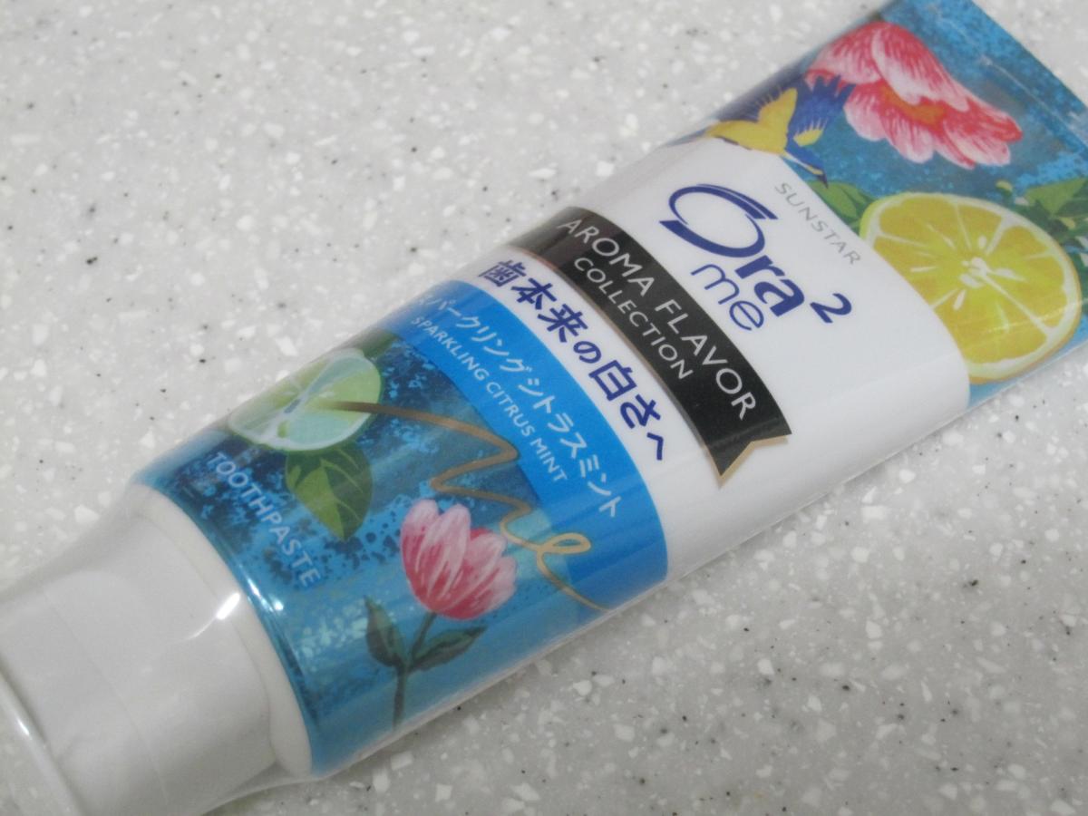 アロマエッセンシャルオイル使用と書いてあり、強すぎるフレーバー感を心配しましたが使ってみるととてもちょうど良いシトラスの風味で歯を磨くたびに癒しを感じるフレーバー感でした。またオーラツーシリーズの特徴であるステイン除去成分も嬉しいです。
