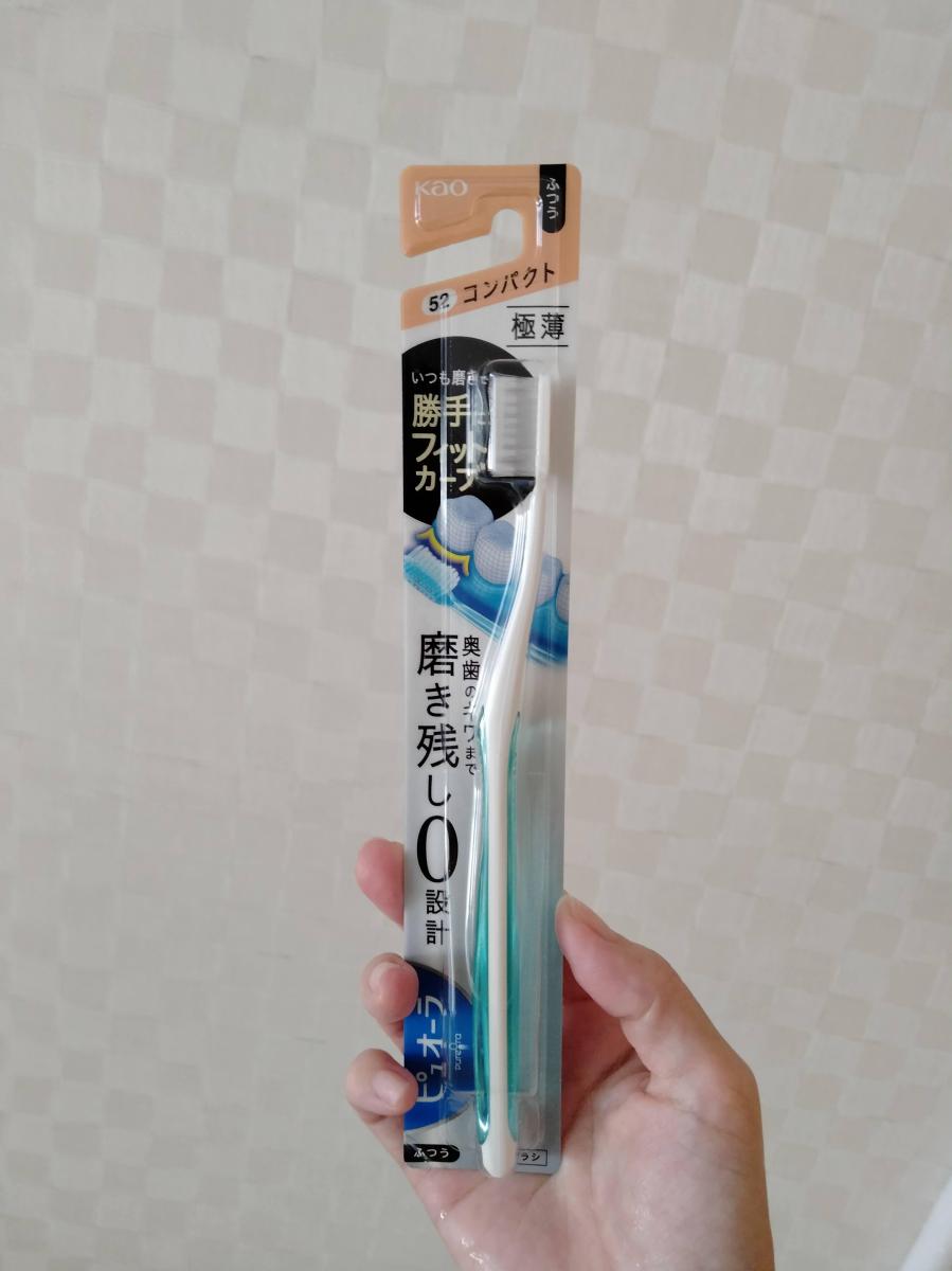 親知らずが生えていたせいで曲がってしまった1番奥の歯。親知らずは抜いてもらったんですが磨きづらいので、ヘッドが薄く、しかも毛が短いのを探して、いろいろ比べてみてこのピュオーラ、薄型コンパクトにしました。