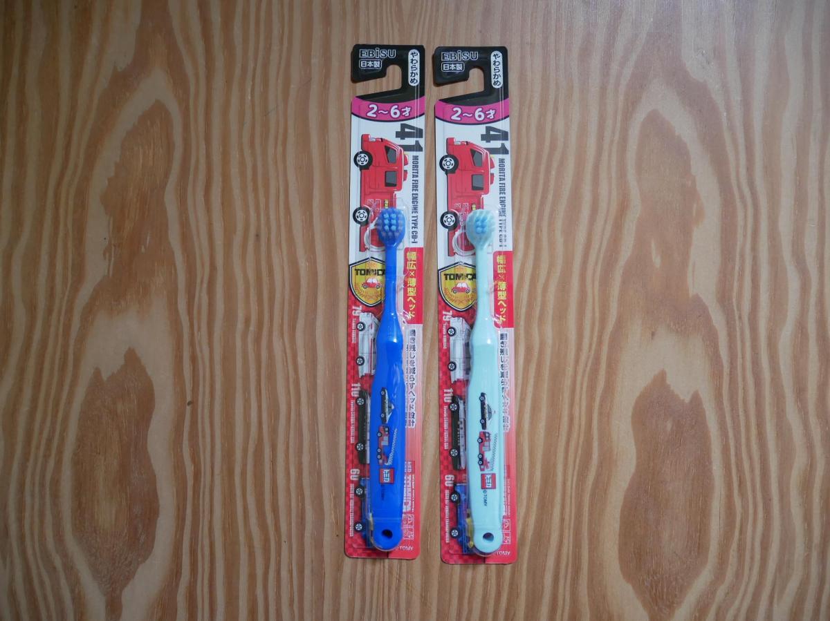 色々試した結果我が子はエビスの歯ブラシが一番磨きやすいそうです。幅広で薄型なところが奥歯にも届きやすく磨き残しも少ないようで歯科検診で歯医者さんに褒められたので今後も購入していきたいです。絵柄が色々あって可愛いのも良いと思います。