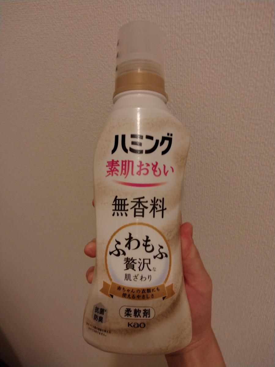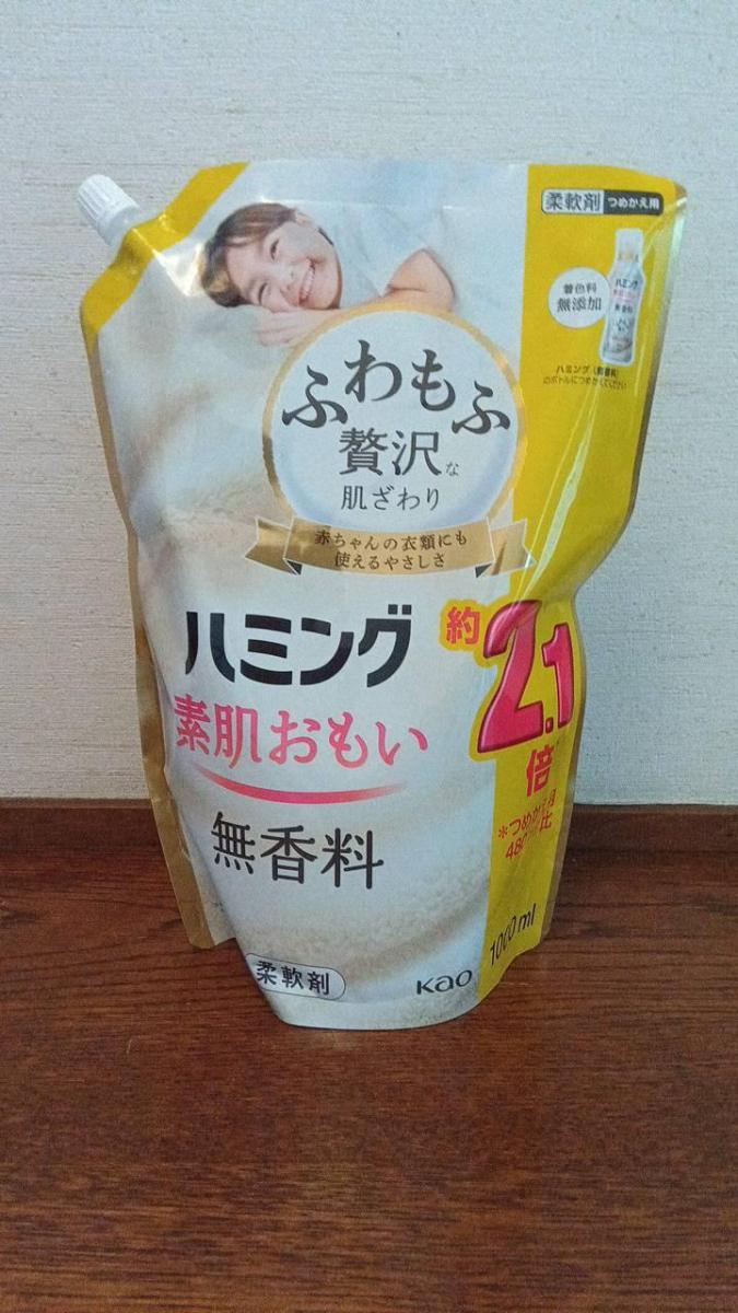 ハミングはいつも香り付きのものを使っていますがドラッグストアの特売になっていたので無香料ってどんなだろうと試しに購入しました。使うといつものような香りはまったくないものの、仕上がりは同じくふんわり柔らか。着色料、無添加なので肌にやさしく赤ちゃんにも使えるという安心感もいいなと思いました。