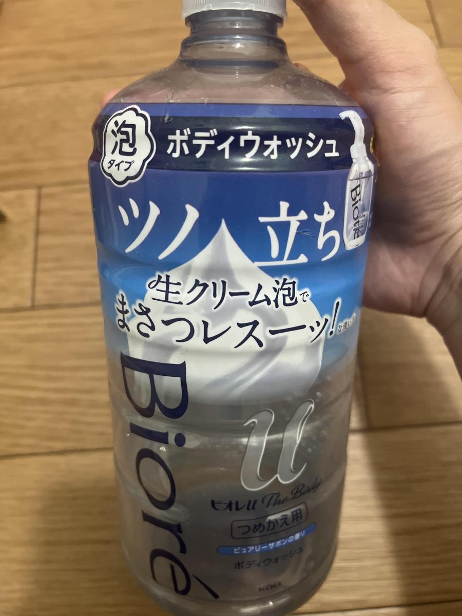ボディウォッシュのビオレU泡タイプでツノ立ち生クリーム泡でピュアリーサボンの香りです。この製品の購入したきっかけは手術後の後の洗い方が気になった時に超微細な泡で肌をこすらずに汚れを落とすというキャッチコピーに喜び使用しています。