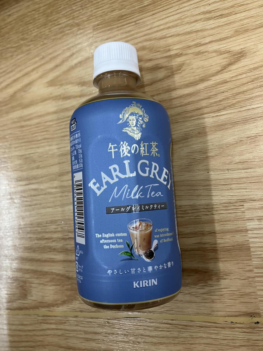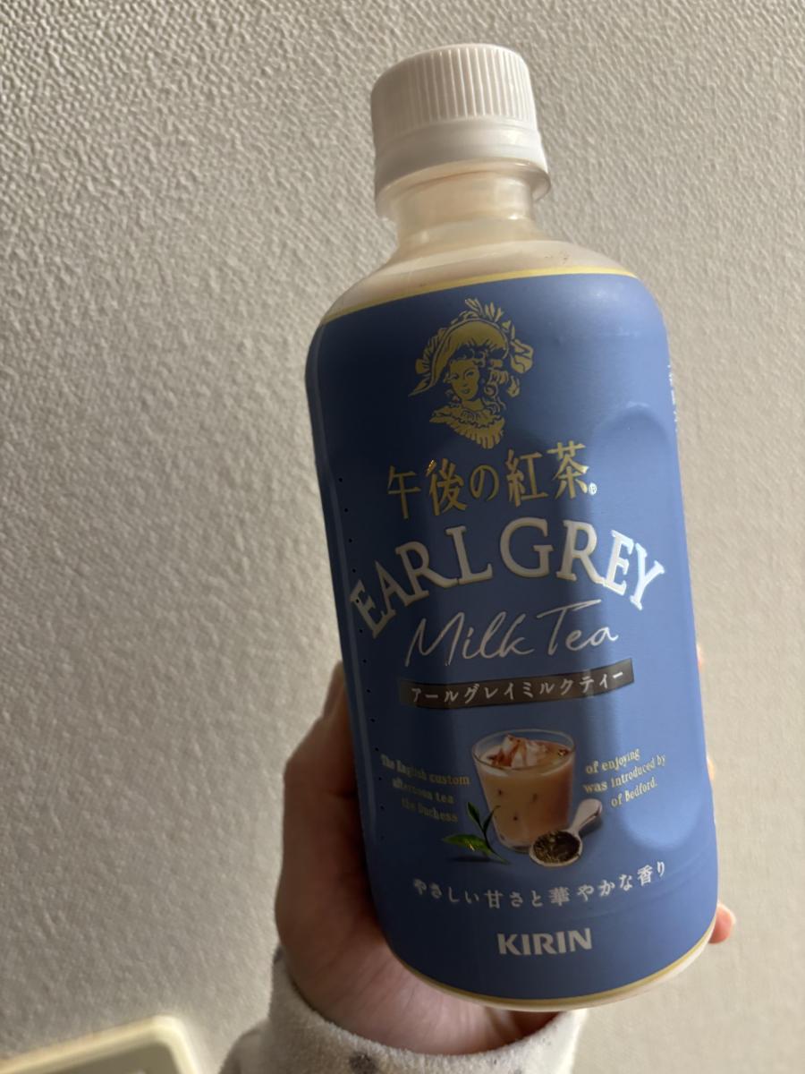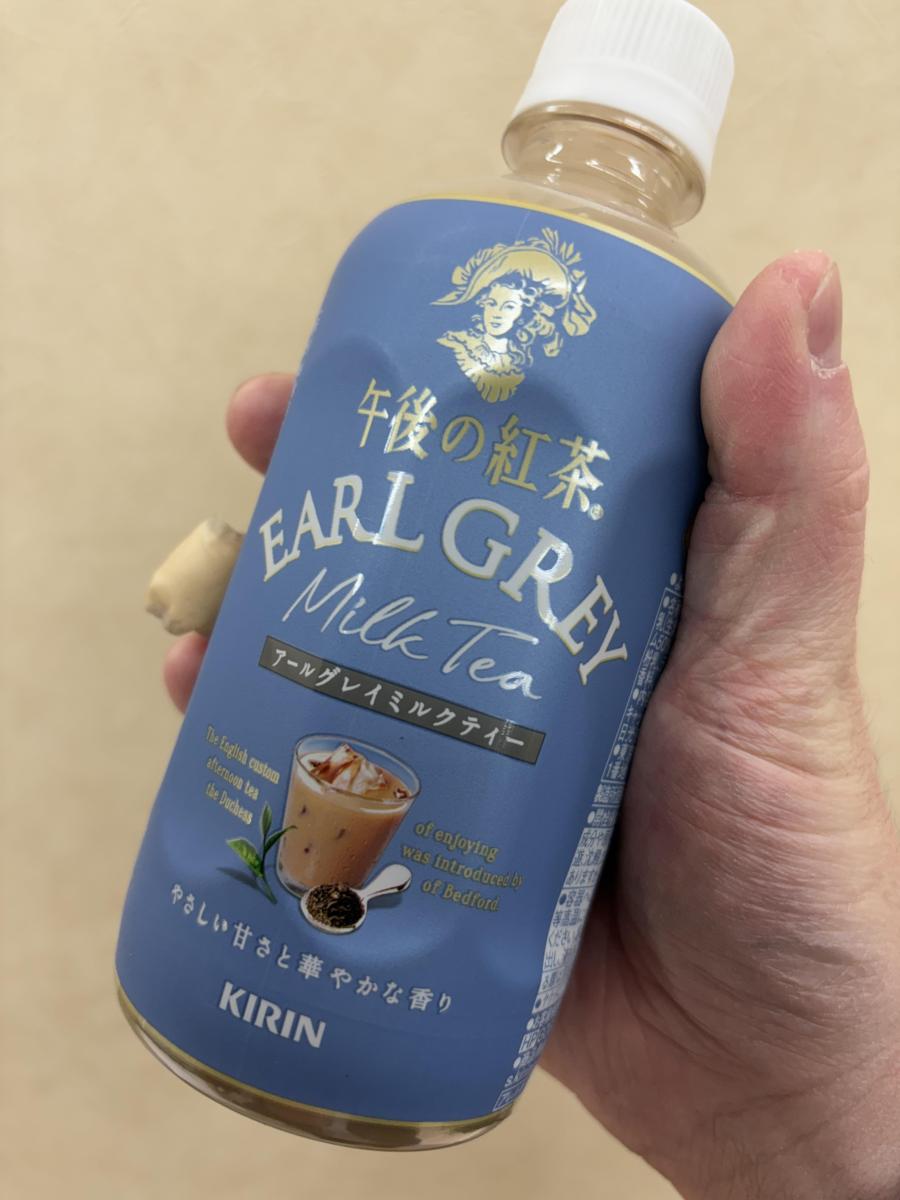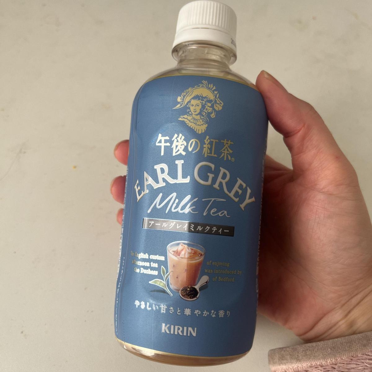 ペットボトルの紅茶の定番、午後の紅茶のラベルの色が違うのが気になって手に取りました。アールグレイのミルクティー、しかも甘さ控えめです。ミルクティーとしてはさっぱりですが、アールグレイのベルガモットの香りが良く、温度が変わっても最後まで美味しく飲めましたま。
