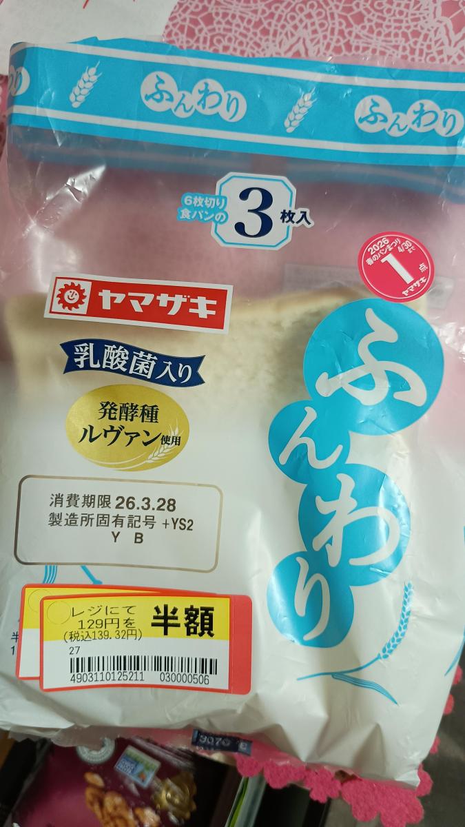 ヤマザキの食パンはどれもしっかりした生地の食パンばかりなんですが、これが一番柔らかくて大大ファンです。私調べでは、ヤマザキNo.1です♡白と水色のパッケージを見つけたら即買い!