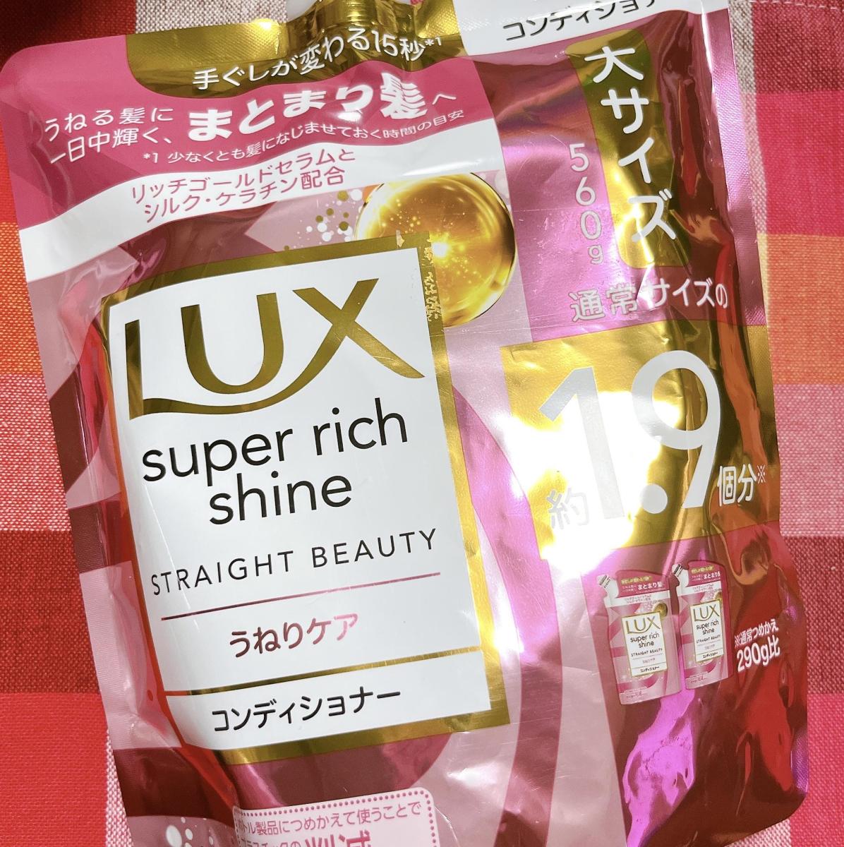 ラックスは色々な種類があるが、パサつきが気になっていたのでスーパーリッチを購入。コンディショナーだけど、クリームみたいにコッテリとしたテクスチャーで髪によく浸透します。洗った後に軋むこともなくサラサラした仕上がりが気に入りました。