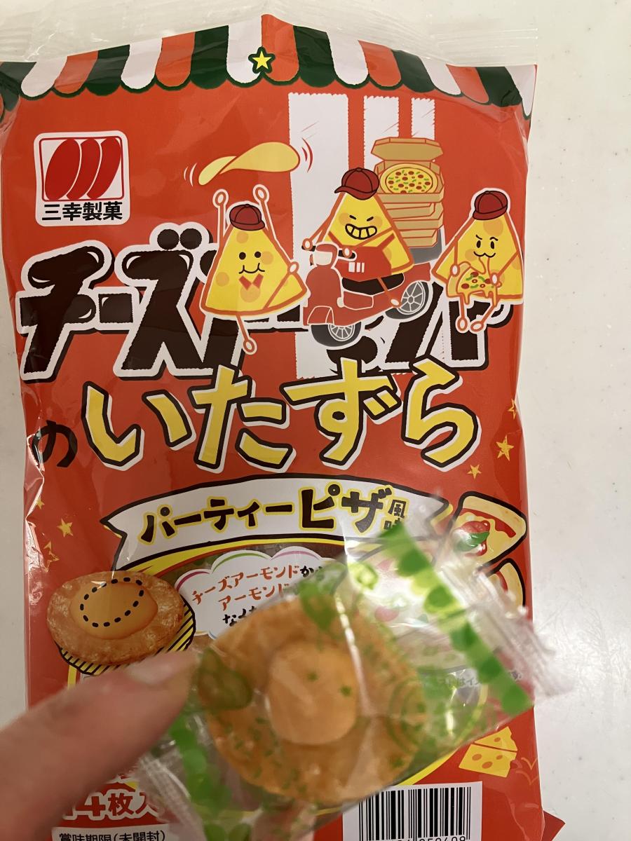 最初にチーズの濃厚な香りがふわっと広がり、一口食べるとトマトやスパイスの風味がしっかり感じられて、本当にピザっぽい味わい!おせんべいのサクッと軽い食感とピザ風味の組み合わせが意外にも相性抜群で、食べだすと止まりません。チーズのコクが後を引いてクセになる美味しさです。おやつにもおつまみにもぴったりで、大人から子どもまで楽しめる味だと思います。またリピートしたい商品です。