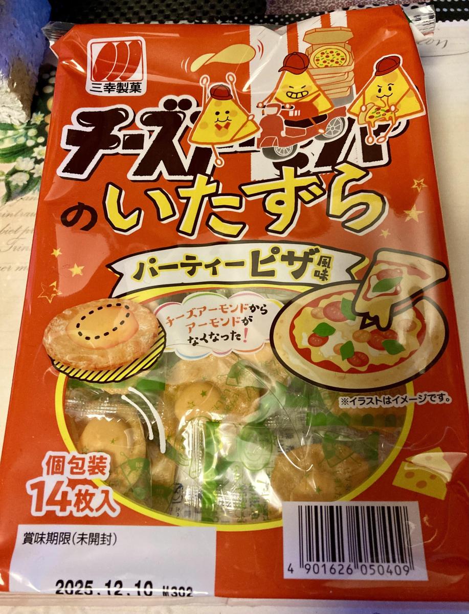 チーズアーモンドのおかきからアーモンドがなくなって、さびしいのですが、ピザ風味がプラスされて洋風のおかきとして美味しく食べました。