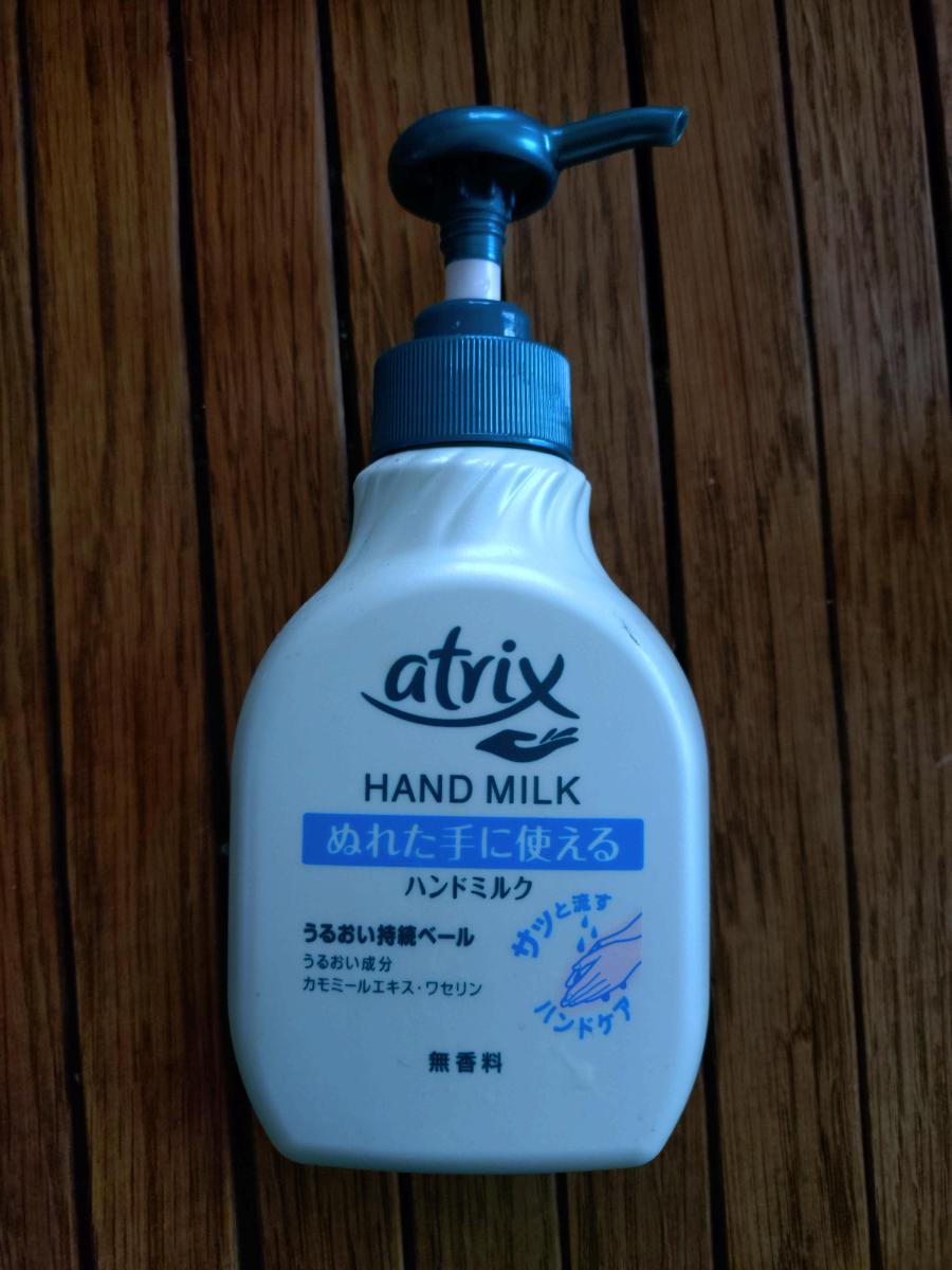 こちらのハンドミルクは手洗いの後などに付けると手が潤い、乾燥予防にとても良いです。サラッとしていて手がベタつかないのが特徴です。濡れている手に馴染ませるだけなので使いやすく、無香料なので使いやすいです。