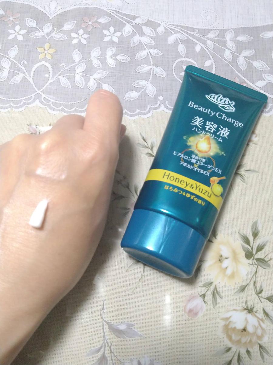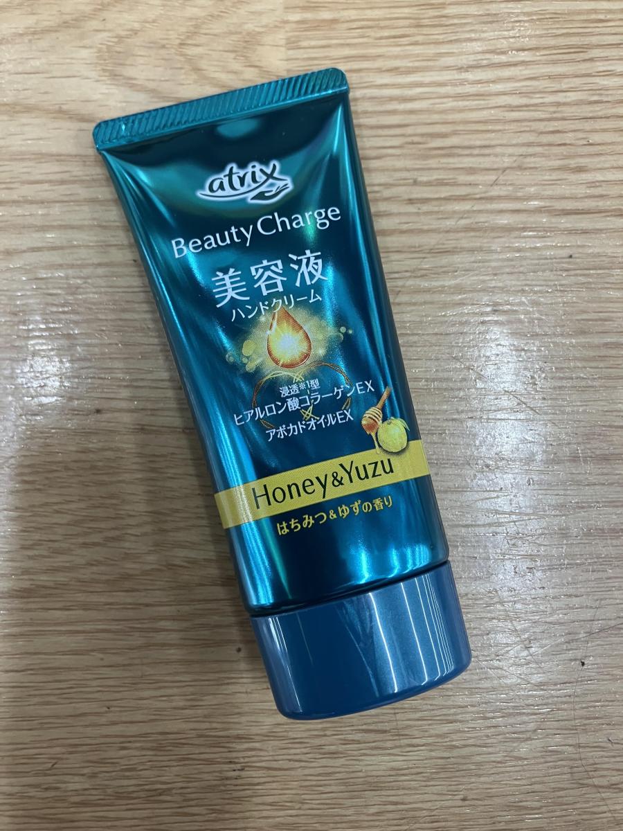 アトリックスのビューティーチャージシリーズ。使い心地が良くお気に入りのハンドクリームです。サラッとした実感のクリーム。伸びが良くスーッと肌に馴染んでくれます。手のベタつきもほとんどないので日中のケアに向いています。保湿力もそれなりに実感できます。ハチミツとゆずの優しい香りがとってもいいにおい!自分の手をクンクン嗅いでしまいます(笑)ドラッグストアで手軽に購入できますしお値段も高くないので家計にも優しいです。