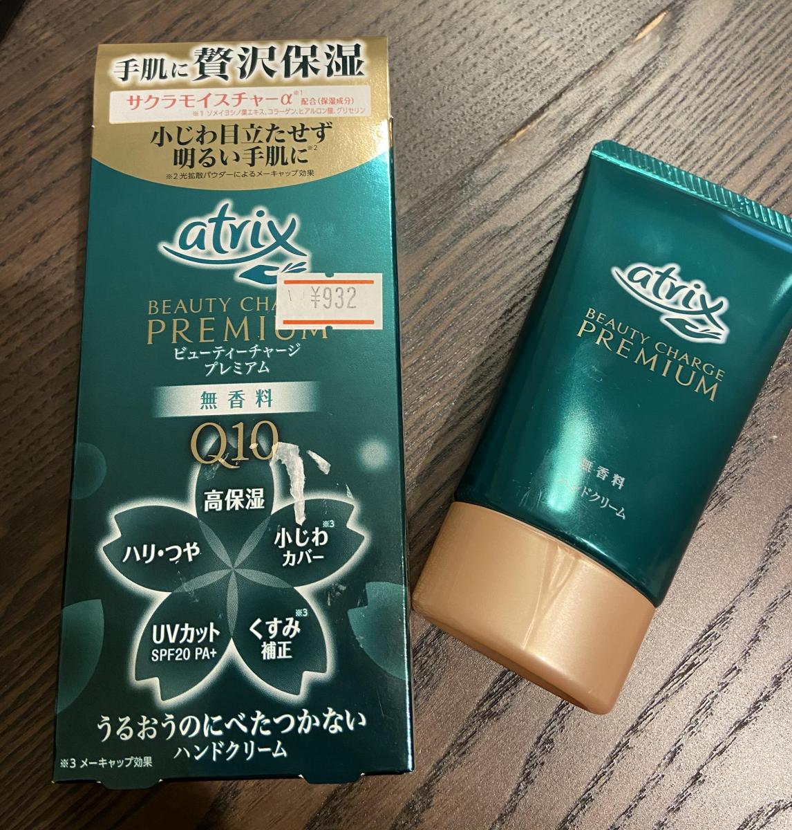 アトリックスハンドクリームのプレミアムバージョンです。サクラモイスチャー成分配合で、保湿はもちろん、ハリ艶や小ジワのケアもできちゃう優れものです。くすみ補正効果もあるから、常に美しい手元になれます。高保湿だけどベタつかない使用感も気に入っていて、使用後に携帯触ったりバッグ持ったりしても違和感ありません。