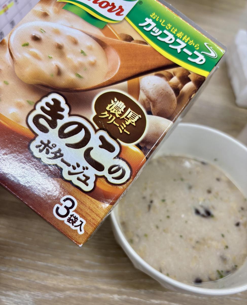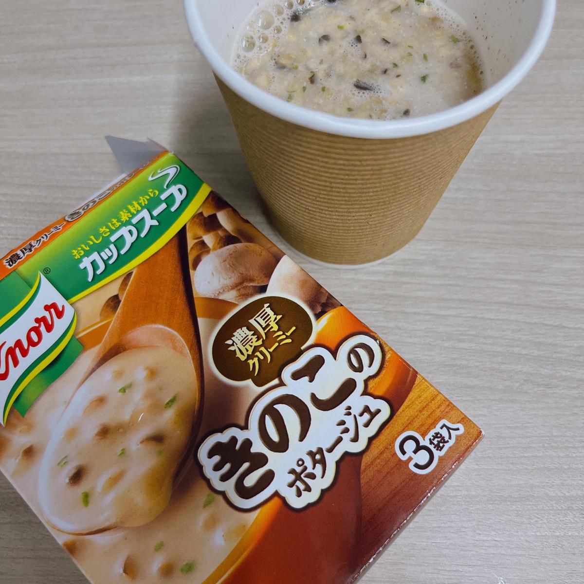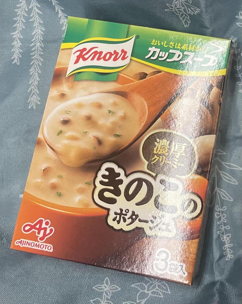 そろそろあたたかいスープを色々飲みたい...クノールのスープは色々な種類があり美味しいです、今回はきのこを購入してみました!お湯をそそぐと簡単、すぐにスープが出来上がり、きのこのいい香り、いろいろなきのこが入っていて美味しく楽しめました。クリーミーな味わいでロールパンやフランスパンと一緒に食べてもよく合いました!また必ずリピートしたいです。