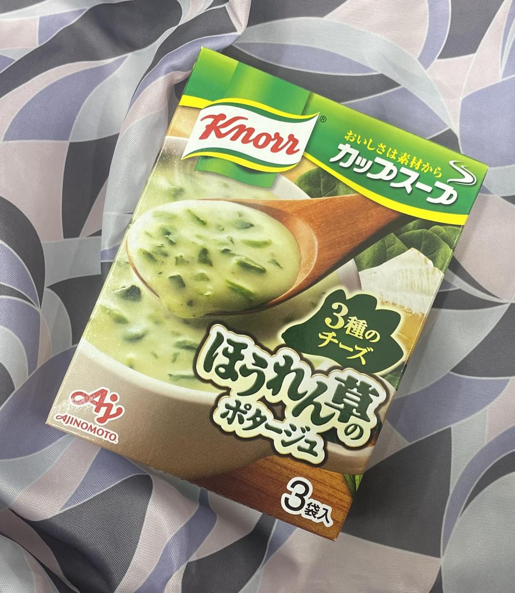 肌寒い季節になると、すぐに食べれるのにあたたかいスープが恋しくなります。クノールのスープは種類もたくさんあり、どれも美味しいので大好きです。こちらのほうれん草は、ほうれん草がちゃんとたくさん入っており、チーズ仕立てということで、濃厚なチーズの味もしてとても美味しかったです。飲み応えあり、フランスパンと一緒に飲んでみてもとてもよく合いました。