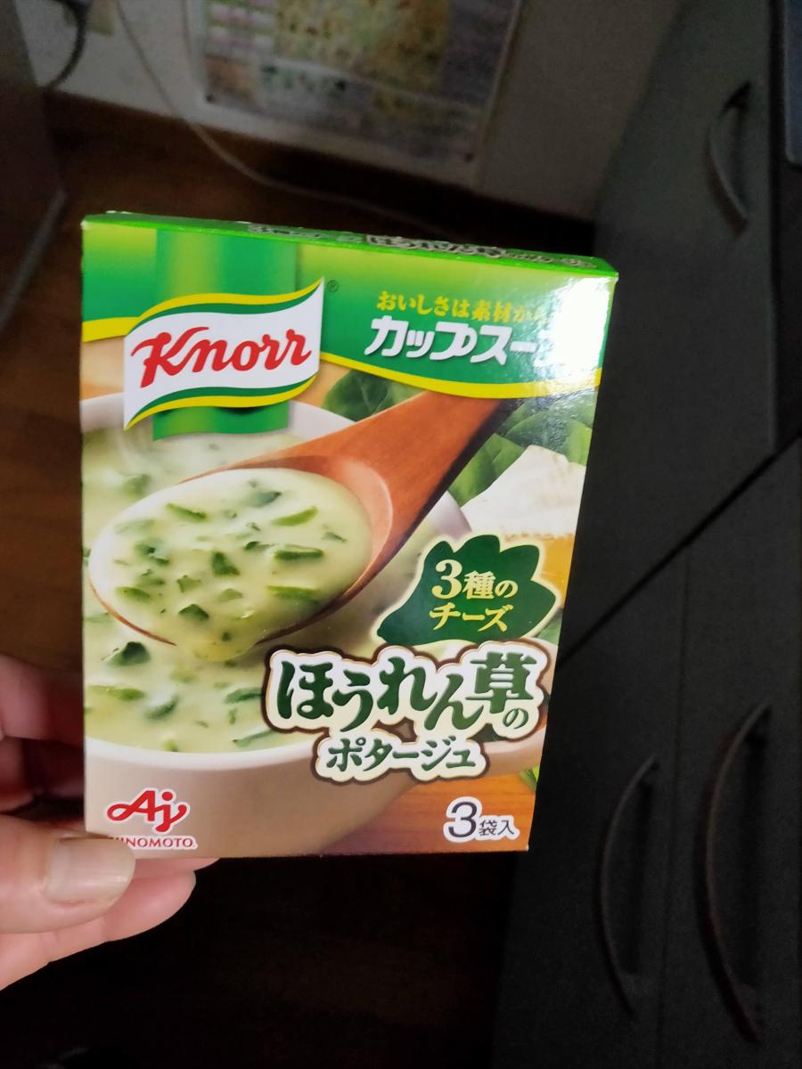 いつもクノールはコーンスープばかりなので、他の味も試してみたくなりました。意外にほうれん草の具がちゃんと入っていて、チーズのコクをしっかり感じます。たま、記載通りの分量のお湯だといつも味が濃く感じたので、結構お湯たっぷりで飲みました。