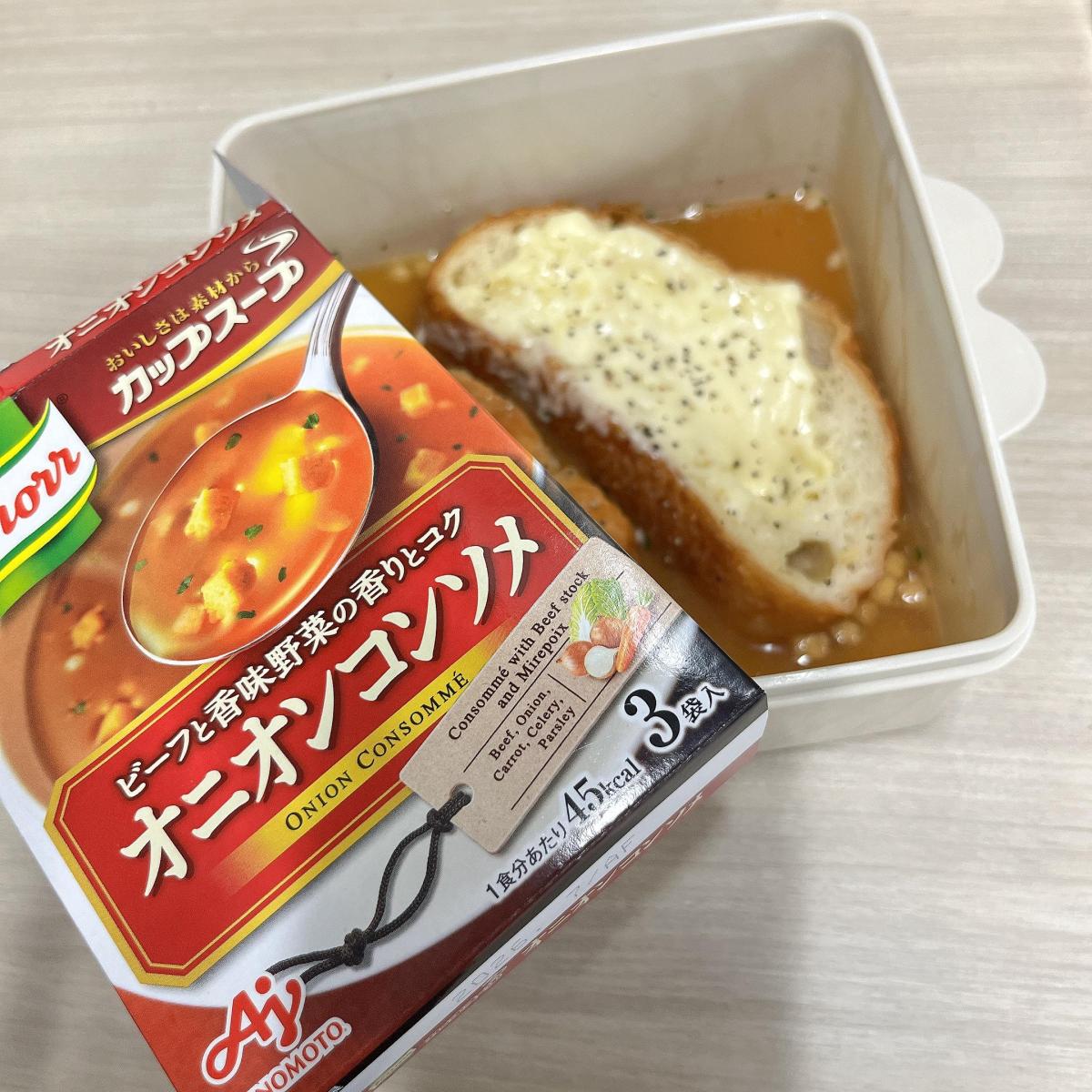 家でオニオン系のスープをつくるのは手間がかかるので、簡単に美味しい『オニオンコンソメ』スープが頂けるのは嬉しいです。