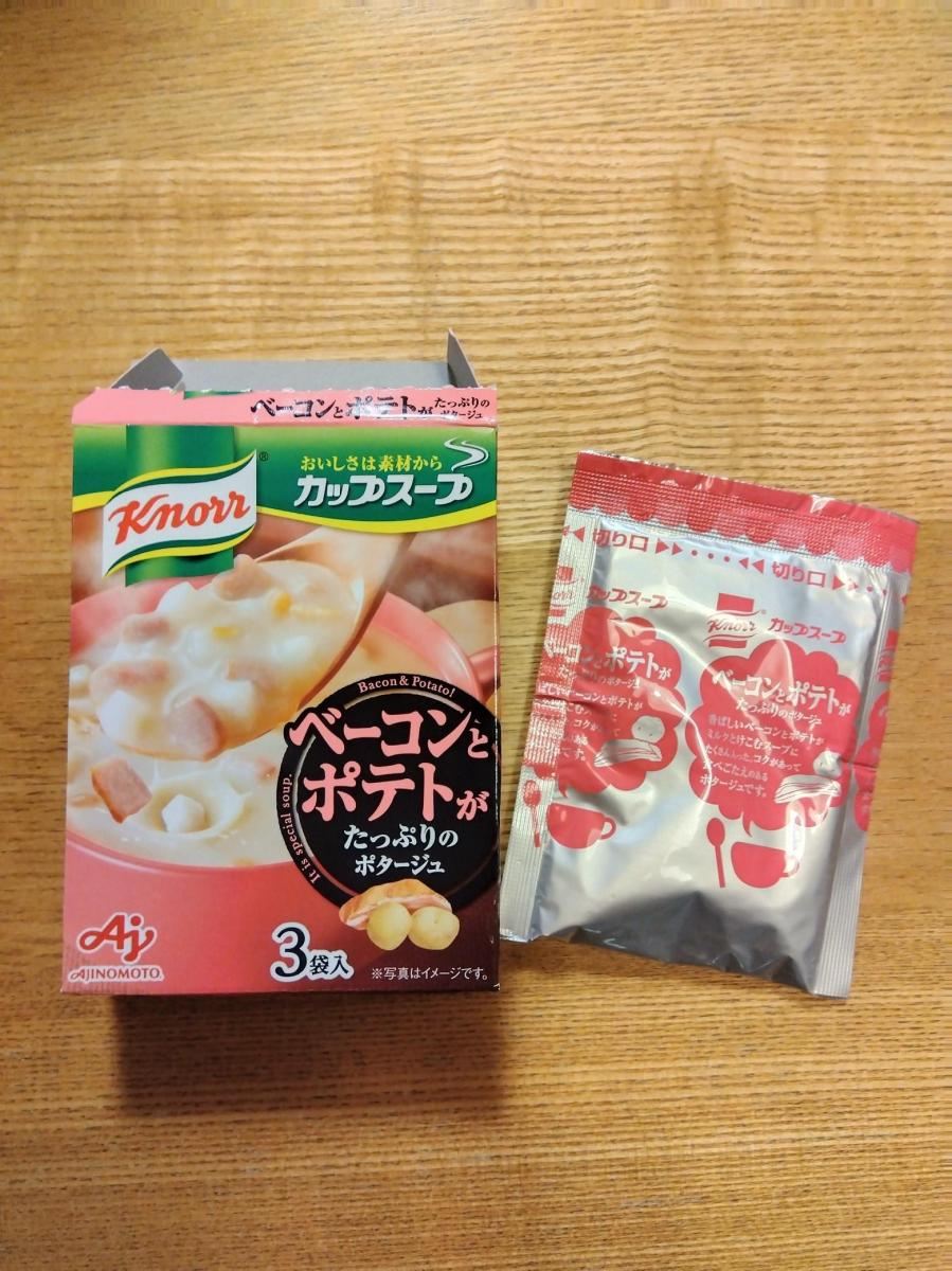 ベーコンの香ばしいうまみが、ちょっとリッチです。くるくると、かき混ぜているときのポテトのホクホクさや、とろみが出てくるときが楽しいです。混ぜてから1分くらい待った方が味が馴染む感じがします。ベーコンは小さめですが、ポタージュのコクと塩気があり、食べ応えがあります。冬の寒い朝に温まります。