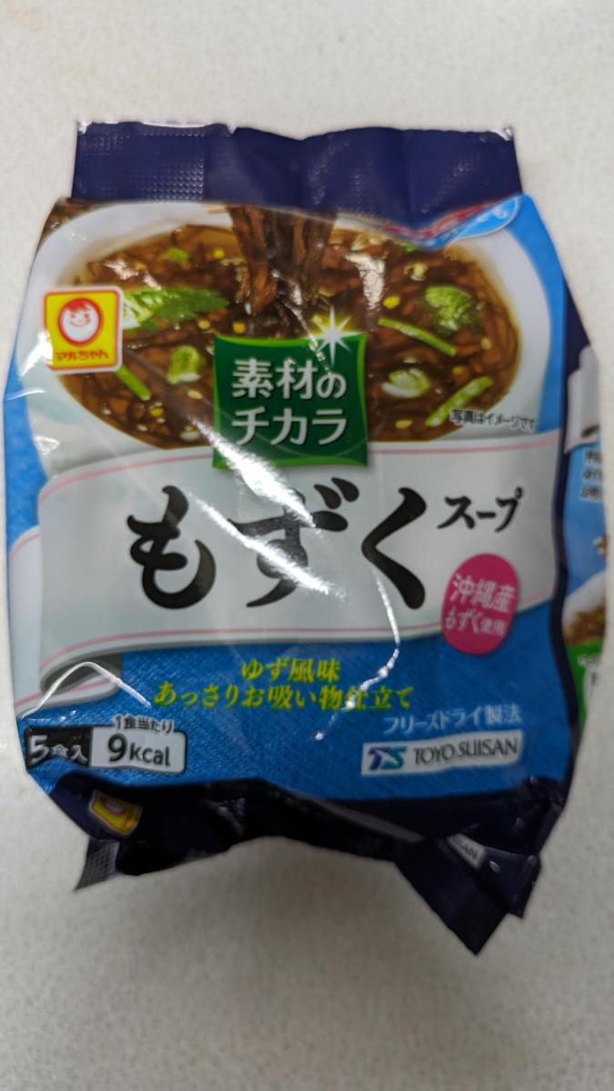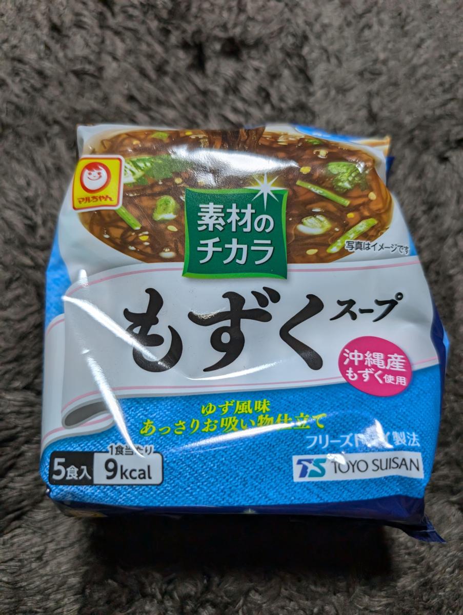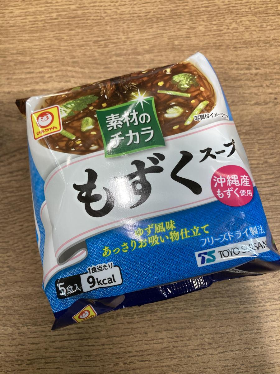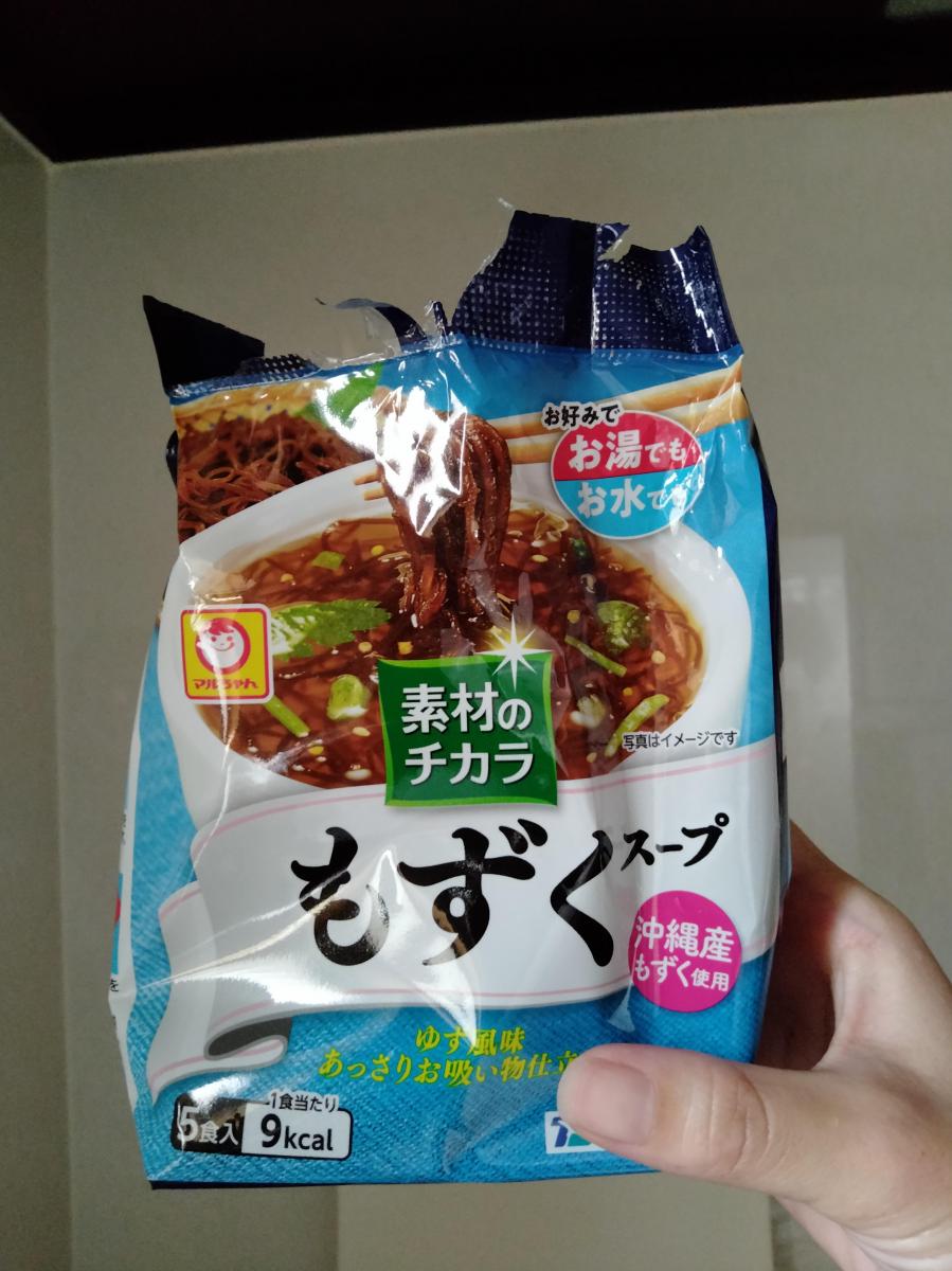 涼し気な水色と青色のパッケージのもずくスープを買ってみました。