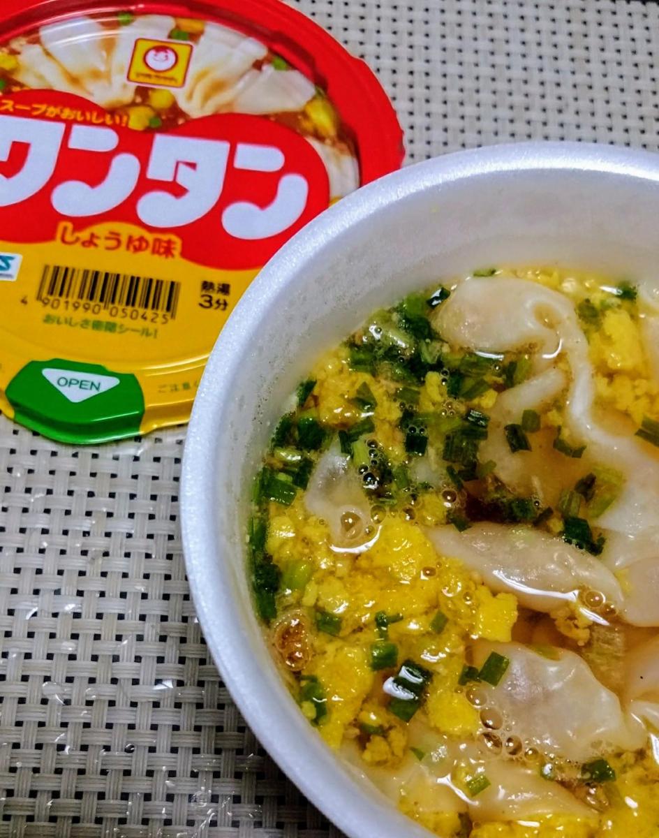 ワンタンが柔らかくツルツルで美味しいです。スープは醤油味であっさりしていて飲みやすいです。小腹がすいたときに良く食べてます。おむすびや焼きそばと一緒に食べると美味しいですよ。コストパフォーマンスが高くて良いです。