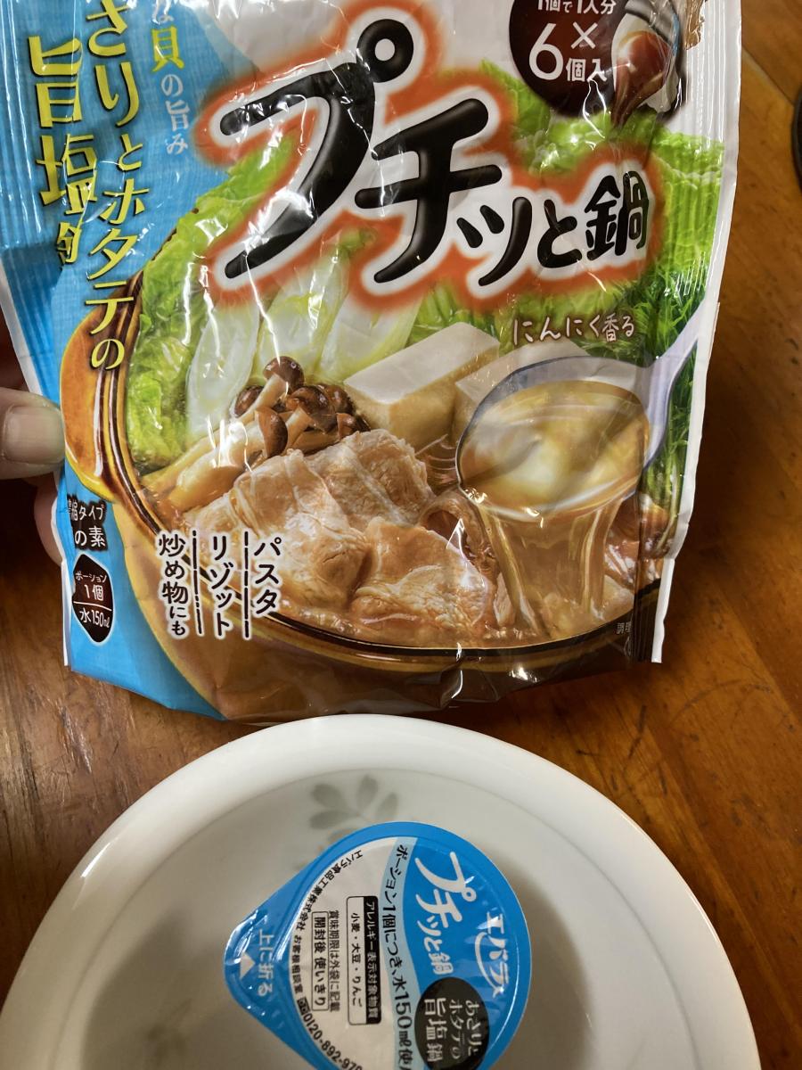 プチっと鍋シリーズはどれも美味しくてリピートしていますが、今回はあさりとほたてのこちらを買ってみました。