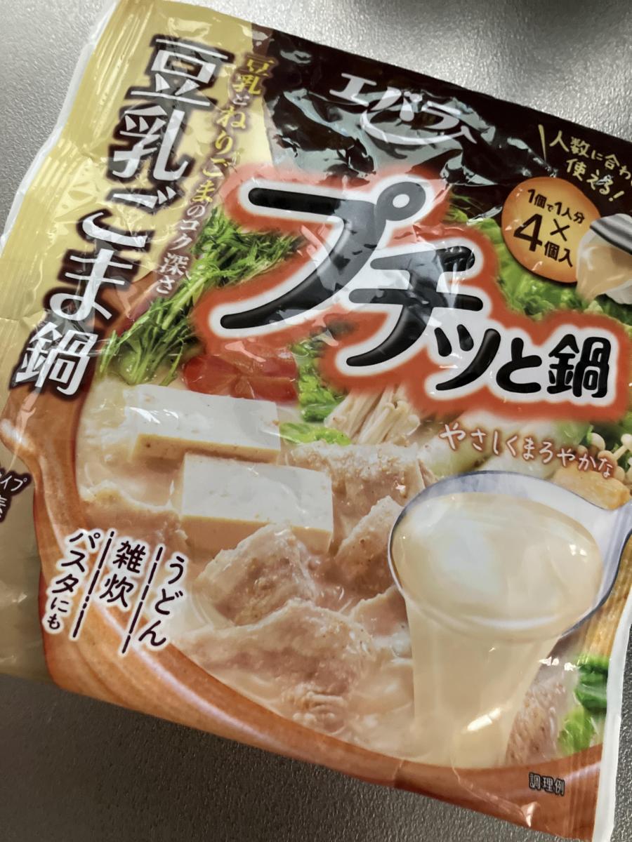 1人で鍋が食べたいなという時に便利なぷちっと鍋。豆乳のまろやかさがあり、お肉や野菜がおいしく食べられます。ごまが加わることで、またコクも深まります。
