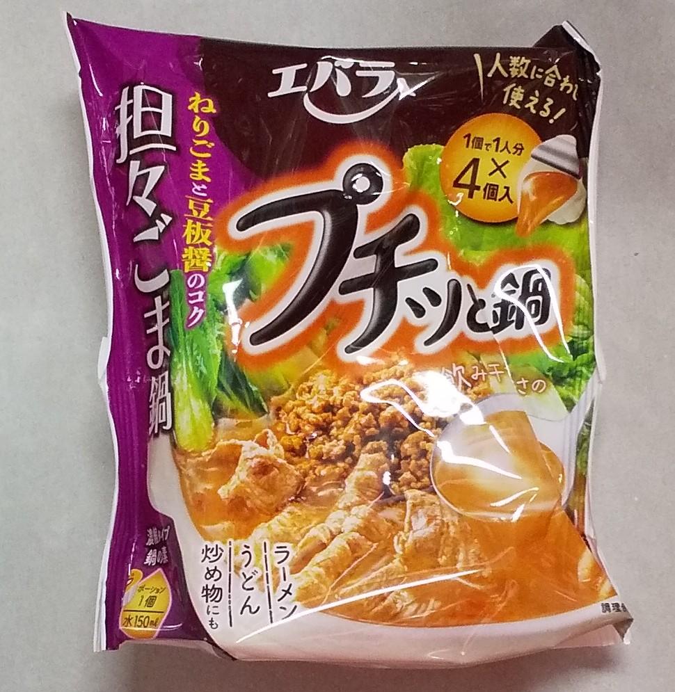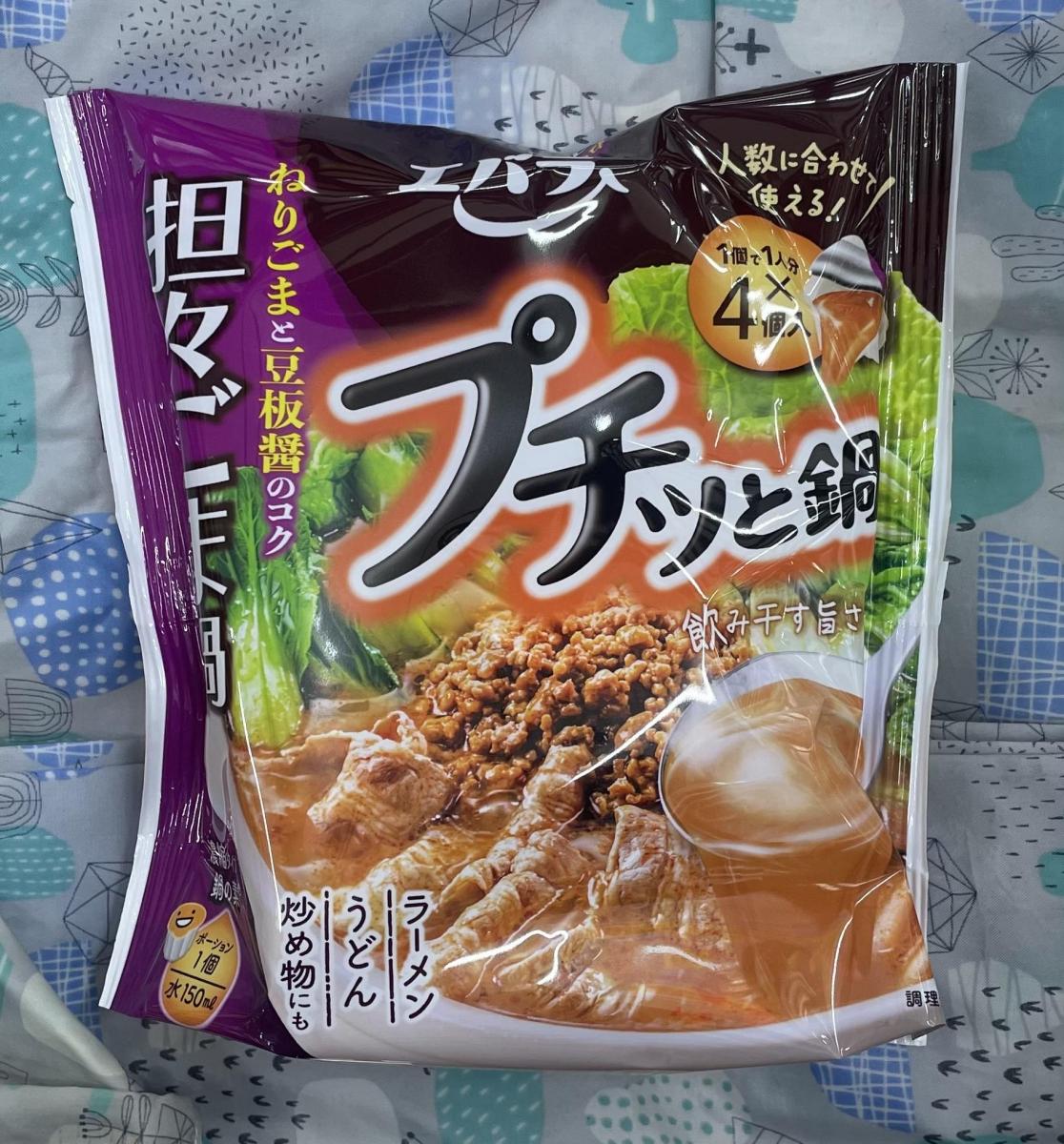 エバラプチッと鍋坦々ごま鍋はスーパーでお安く購入しました。一人でお昼に野菜とかうどん、ラーメンなどを煮込んで食べます。小分けなので気軽にいつでも食べれるので良いです。
