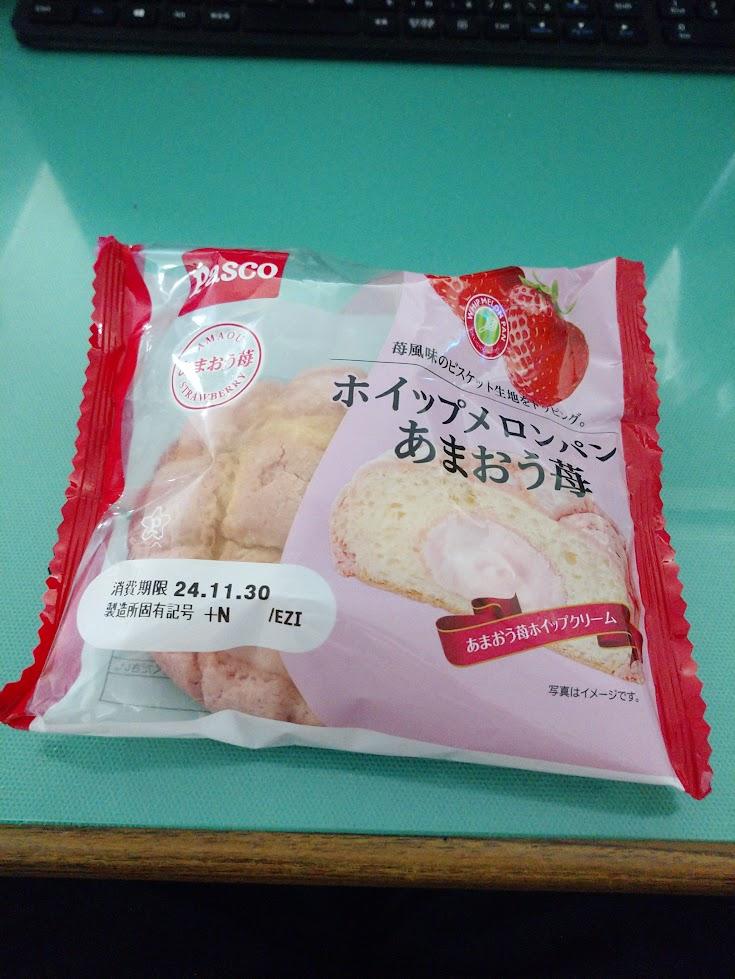 目新しいメロンパンを見かけたらまず買う。ということで売り場でも可愛さで目立っていたこのあまおう苺のメロンパンを買ってみました。封を開けるともうそこにはイチゴが香ってきますよ。食べてみると生地はちょっとパサついた感じですね。肝心のホイップクリームについてですが、二口ほど食べても中々イチゴのホイップが出てこないな…と思っていたら三口目からはイチゴホイップが存在感を増してきましたよ。ほどよい甘さにイチゴの香りがいいですね。ホイップが多めですからオヤツ感覚で食べるのがいいかも。
