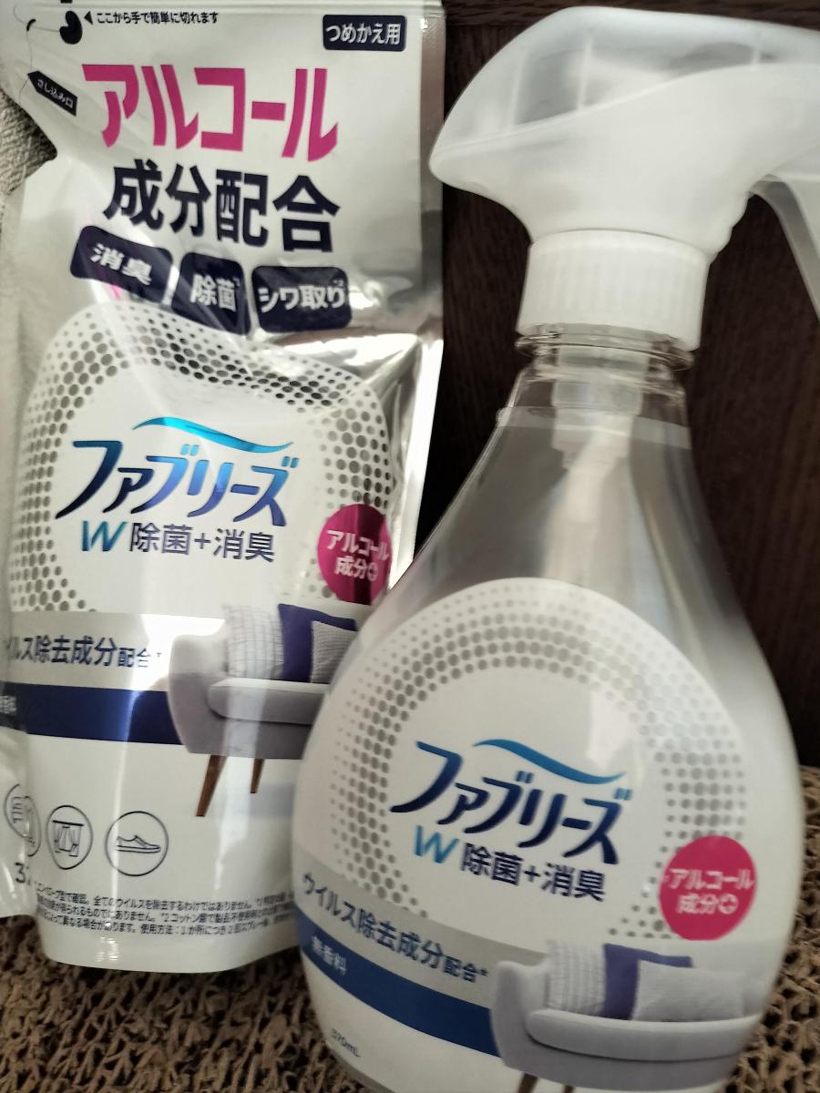 いつも便利なスプレータイプのファブリーズ、アルコール配合というのを見つけて購入してみました。寒いですし、色々ウイルスも心配なのでアルコール配合はかなり嬉しいです。しかも無香料というのがすごいです。におい気にせず使用できるのでとてもよかったです。気軽にスプレーするだけで除菌ができる優れモノだと思います。