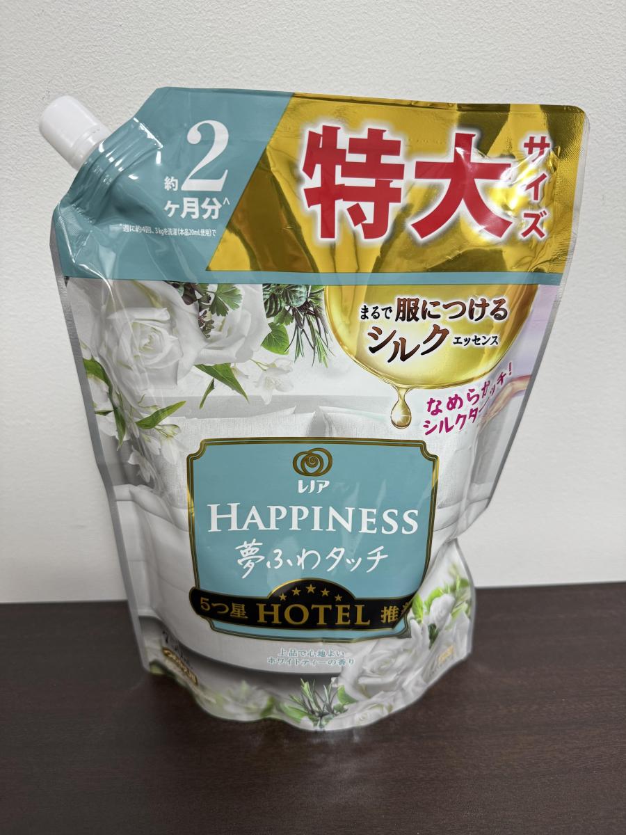 柔軟剤は香りを楽しみたいので数種類を使用しています。レノアハピネスは洗濯物が柔らかくなり、香りも残るのでおしゃれな洋服を洗う際におすすめです。このホワイトティーはキツくなくほんのりと香る上品なタイプなので家族全員に使用できて便利です。